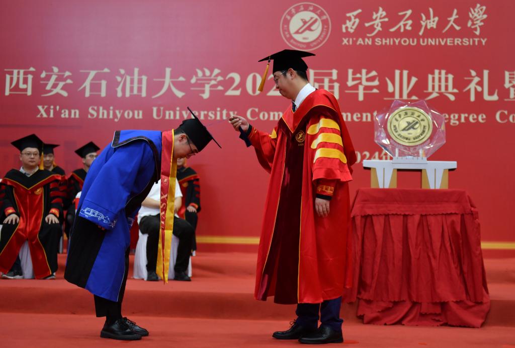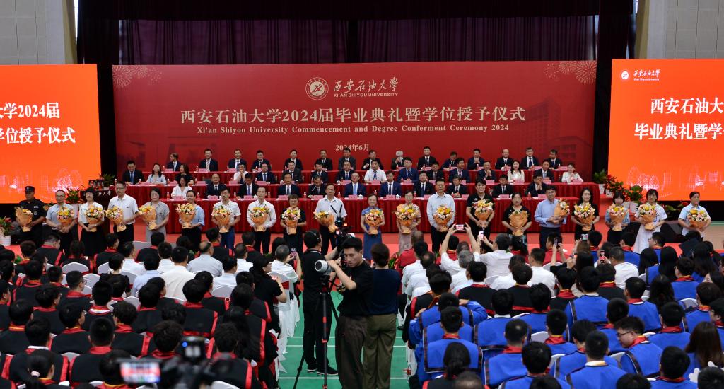 6月20日上午,西安石油大學(xué)2024屆畢業(yè)典禮暨學(xué)位授予儀式在雁塔校區(qū)體育館舉行。校黨政領(lǐng)導(dǎo)常江、王進(jìn)富、張木、王輝強(qiáng)、程永清、楊戰(zhàn)社、蘇文甫、張驍勇、趙健、樊曉民出席典禮。相關(guān)職能部門、各院(系)負(fù)責(zé)人,教師代表、校友代表,2024屆畢業(yè)生及家長3000余人來到典禮現(xiàn)場,共同見證這一重要時刻。典禮由校黨委副書記張木主持。