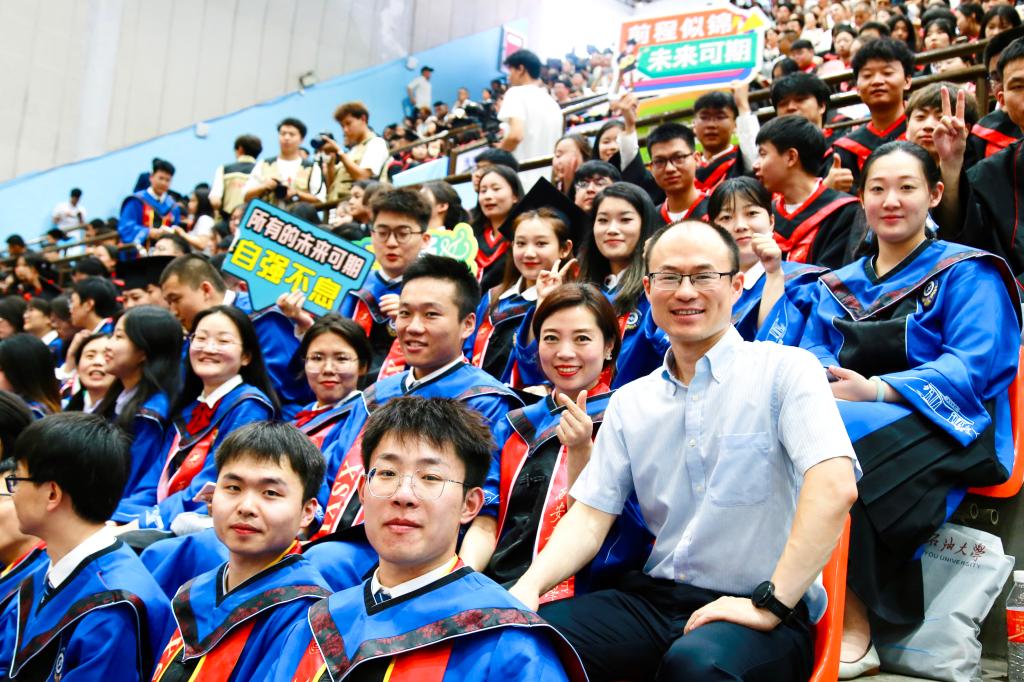王進(jìn)富校長在校學(xué)位評定委員會委員的見證下為到場的本科、碩士和博士畢業(yè)生撥穗、授予學(xué)位,并合影留念。