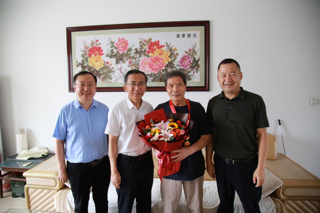 在中國共產(chǎn)黨建黨103周年來臨之際,為弘揚黨的光榮傳統(tǒng)和優(yōu)良作風,加強黨內關懷、傳遞組織溫暖,6月28日上午,校黨政領導常江、王進富、張木、王輝強、程永清帶隊走訪慰問黨齡達到50周年且表現(xiàn)優(yōu)秀的在校居住的老黨員,為他們頒發(fā)“光榮在黨50年”紀念章,并送上鮮花和慰問品,代表校黨委向老黨員送去黨的關懷和節(jié)日的問候。學校黨委辦公室(校長辦公室)、紀檢監(jiān)察機構、黨委組織部、黨委宣傳部、黨委統(tǒng)戰(zhàn)部、離退休工作處負責人陪同慰問。