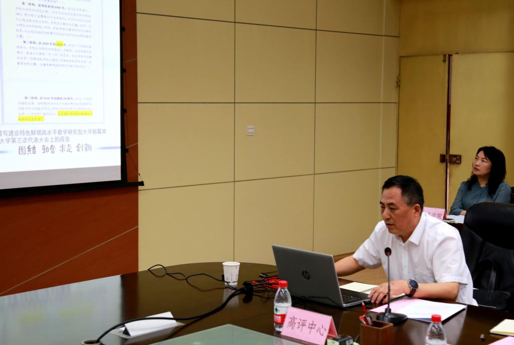 高教研究與評估督導(dǎo)中心主任傅海威從學(xué)校教育評價改革基本概況、教育評價改革實施情況、典型經(jīng)驗做法情況、存在問題與政策建議等方面,就我校深化新時代教育評價改革專項工作進行了詳細匯報。