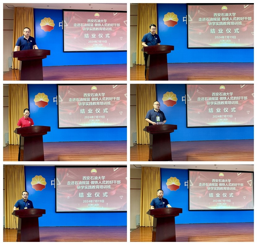 7月19日上午,在培訓(xùn)班結(jié)業(yè)儀式上,6名小組代表趙子龍、黨偉、何云、范崢、吳松、茍毅飛圍繞本次培訓(xùn)主題進(jìn)行了交流發(fā)言,玉門油田培訓(xùn)中心領(lǐng)導(dǎo)為學(xué)員代表頒發(fā)結(jié)業(yè)證書,結(jié)業(yè)儀式在《我為祖國(guó)獻(xiàn)石油》合唱中圓滿結(jié)束。
