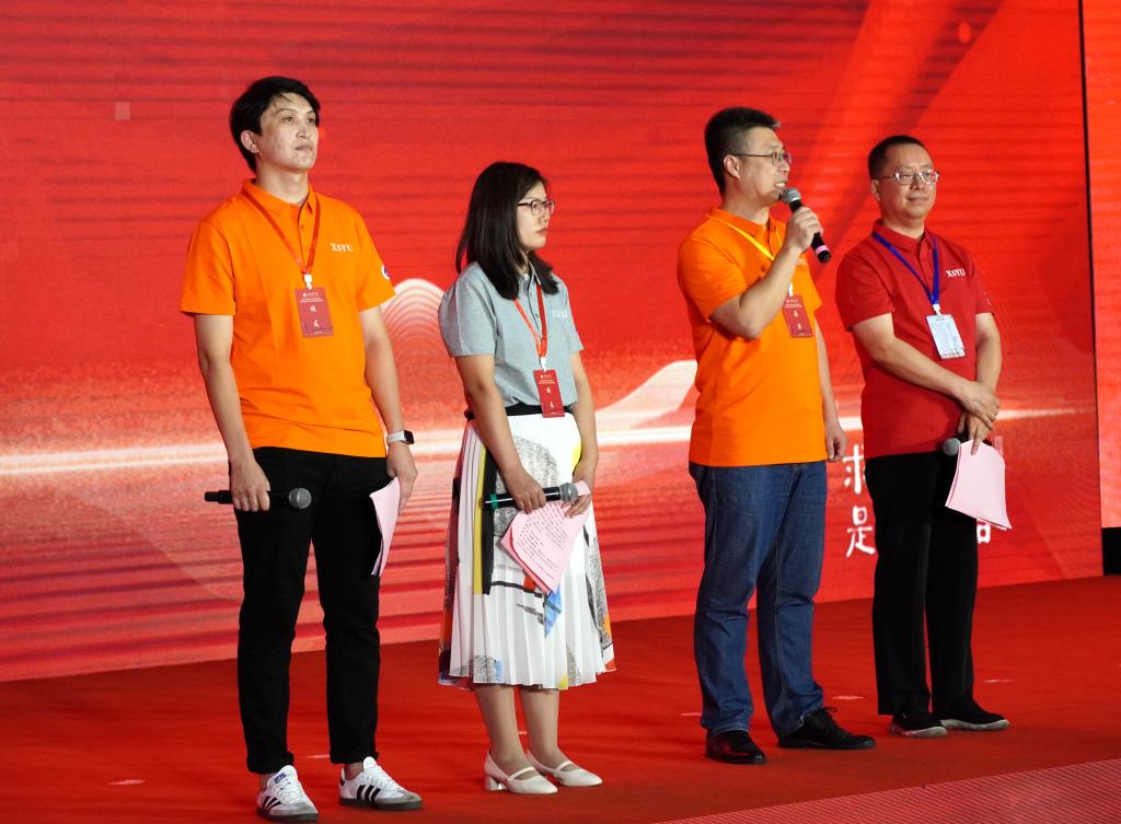 校黨委書記常江為弘石基金設(shè)立團隊頒發(fā)了基金創(chuàng)始獎牌,以感謝他們對學(xué)校發(fā)展作出的重要貢獻。弘石基金設(shè)立團隊代表——礦80級校友單勇上臺領(lǐng)獎。