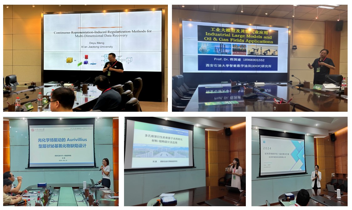 在“新能源+ ”“人工智能+ ”兩個分論壇中,來自西安交通大學、西安理工大學及我校的32名師生做了專題報告,報告由折延宏、高國旺、肖美霞、安敏榮、王磊、呂英、畢佳穎、劉潼八位教師主持。國家級高層次人才、西安交通大學孟德宇教授做了題為“Continuous Representation-Induced Regularization Methods for Multi- Dimensional Data Recovery”的報告;我校程國建教授做了題為“工業(yè)大模型及其油氣業(yè)應用”的報告;我校呂英副教授做了題為“光化學場驅動的Aurivillius型層狀鉍基氧化物缺陷設計”的報告;我校青年教師劉潼做了題為“多孔框架衍生的單原子光熱轉化材料-結構設計及應用”的報告。另外,西安建筑科技大學、廈門理工學院、北京伊諾凱科技有限公司等單位及我校研究生做了28個專題報告。