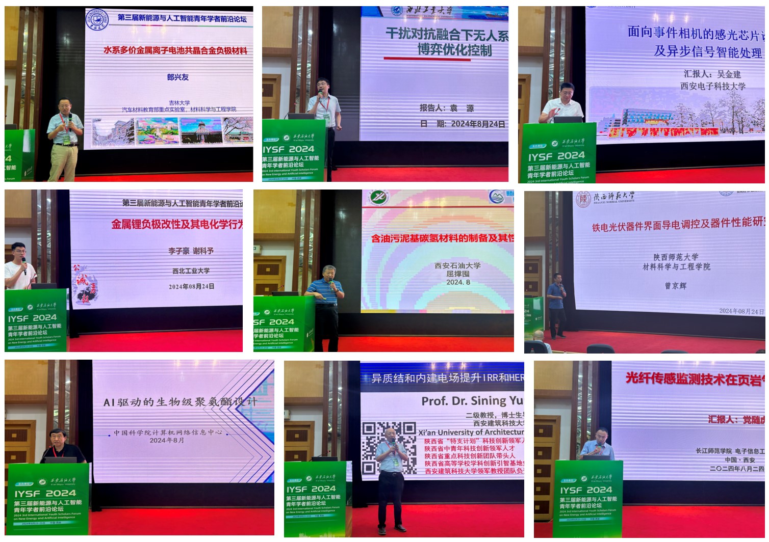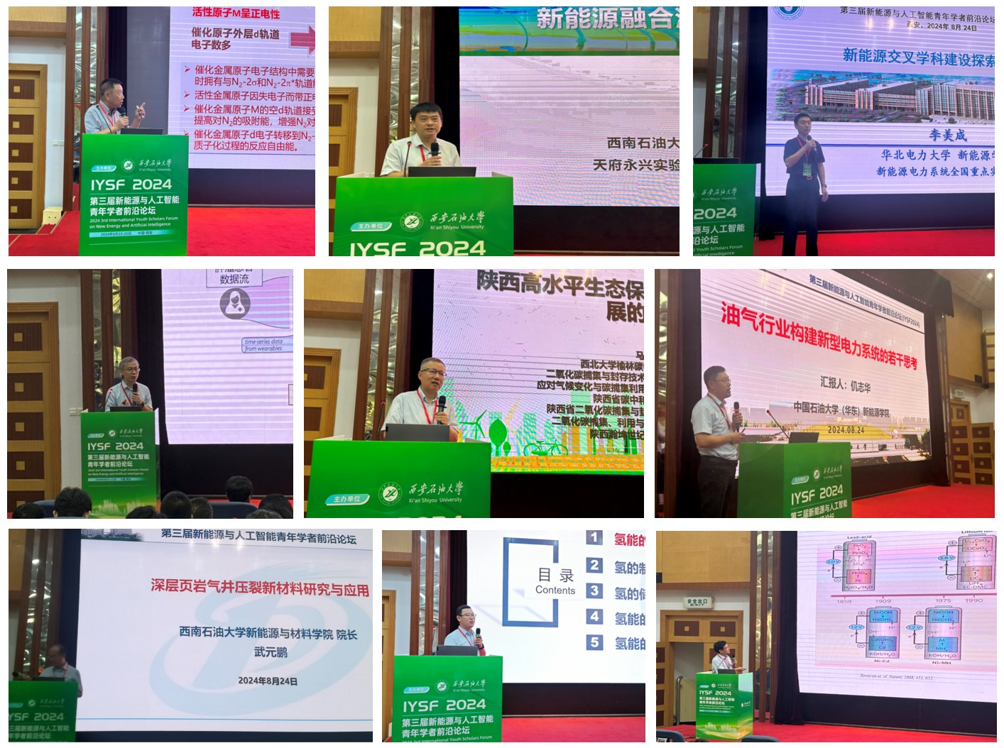 國家杰青、長江學者、吉林大學蔣青教授做了題為“電化學合成氨鉬基催化材料的設計與制備”的報告;國家杰青、廣東省人民醫(yī)院主任醫(yī)師劉再毅教授做了題為“腫瘤多模態(tài)影像AI研究進展”的報告;國家杰青、長江學者、西南石油大學副校長周瑩教授做了題為“新能源融合油氣資源開發(fā)利用”的報告;長江學者、國家萬人計劃科技領軍人才、華北電力大學新能源學院院長李美成教授做了題為“新能源交叉學科建設探索與實踐”的報告;國家高層次人才、西北大學碳中和學院首席科學家馬勁風教授做了題為“陜西高水平生態(tài)保護與綠色高質量發(fā)展的路徑”的報告;中國石油大學(華東)新能源學院副院長仉志華教授做了題為“油氣行業(yè)構建新型電力系統(tǒng)的若干思考”的報告;西南石油大學新能源與材料學院院長武元鵬做了題為“油氣行業(yè)高校新能源學科專業(yè)發(fā)展探索與實踐”的報告;中國石油大學(北京)楊帆教授做了題為“氫能產業(yè)發(fā)展現(xiàn)狀與展望”的報告;國家百千萬人才工程入選專家、西安理工大學李喜飛教授做了題為“鋰離子電池三元正極材料界面改性的研究”的報告;國家萬人計劃科技創(chuàng)新領軍人才、長江學者、國家優(yōu)青、吉林大學郎興友教授做了題為“水系多價金屬離子電池共晶合金負極材料”的報告;國家優(yōu)青、西北工業(yè)大學袁源教授做了題為“干擾對抗融合下無人系統(tǒng)博弈優(yōu)化控制”的報告;國家優(yōu)青、西安電子科技大學吳金建教授做了題為“向事件相機的感光芯片設計及異步信號智能處理”的報告;國家級高層次人才、西北工業(yè)大學謝科予教授做了題為“金屬鋰負極改性及其電化學行為調控”的報告;陜西師范大學材料科學與工程學院院長曾京輝教授做了題為“鐵電光伏器件界面導電調控及器件性能研究”的報告;國家百千萬人才工程入選專家、西安石油大學屈撐囤教授做了題為“含油污泥基碳氫材料的制備及其性能研究”的報告;中科院百人計劃(A類)楊小渝教授做了題為“智算驅動的生物基聚氨酯設計”的報告;陜西省“特支計劃”科技創(chuàng)新領軍人才、西安建筑科技大學云斯寧教授做了題為“異質結和內建電場提升太陽電池和制氫催化劑的性能”的報告;長江師范學院電子信息工程學院院長黨隨虎教授做了題為“光纖傳感監(jiān)測技術在頁巖氣開發(fā)中的應用”的報告。