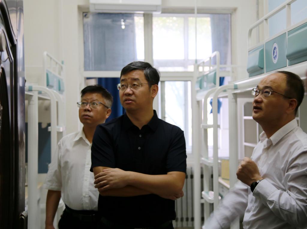王進富帶隊走進東區(qū)15號和16號新生宿舍樓,聽取了后勤處負責同志關于新生宿舍準備工作的匯報。在檢查中他強調,宿舍的環(huán)境直接會影響到學生的學習和生活質量,后勤處等相關部門必須全力以赴為學生提供一個安全、舒適、衛(wèi)生、便利的居住環(huán)境。檢查中,王進富和宿舍樓前偶遇的新生及家長進行了親切交談,并合影留念。