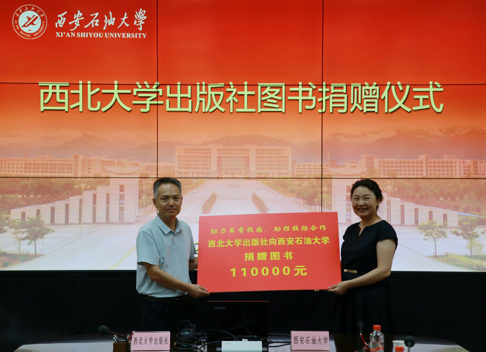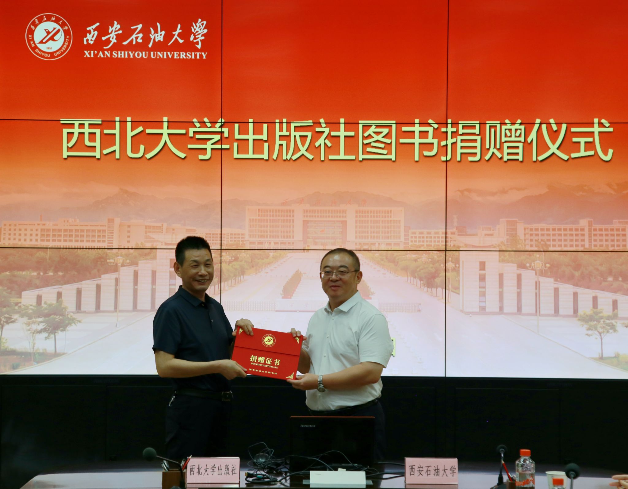 桂方海表示,近年來,西北大學出版社與學界緊密合作,推出了一系列以思想學術和歷史文化為特色的學術類圖書,產(chǎn)生了良好的社會反響。這次圖書捐贈活動是對兩校深化合作戰(zhàn)略協(xié)議的落實和推進,今后將進一步支持西安石油大學文獻資源建設,助力教育教學、科學研究和人才培養(yǎng),推動學校事業(yè)高質(zhì)量發(fā)展。