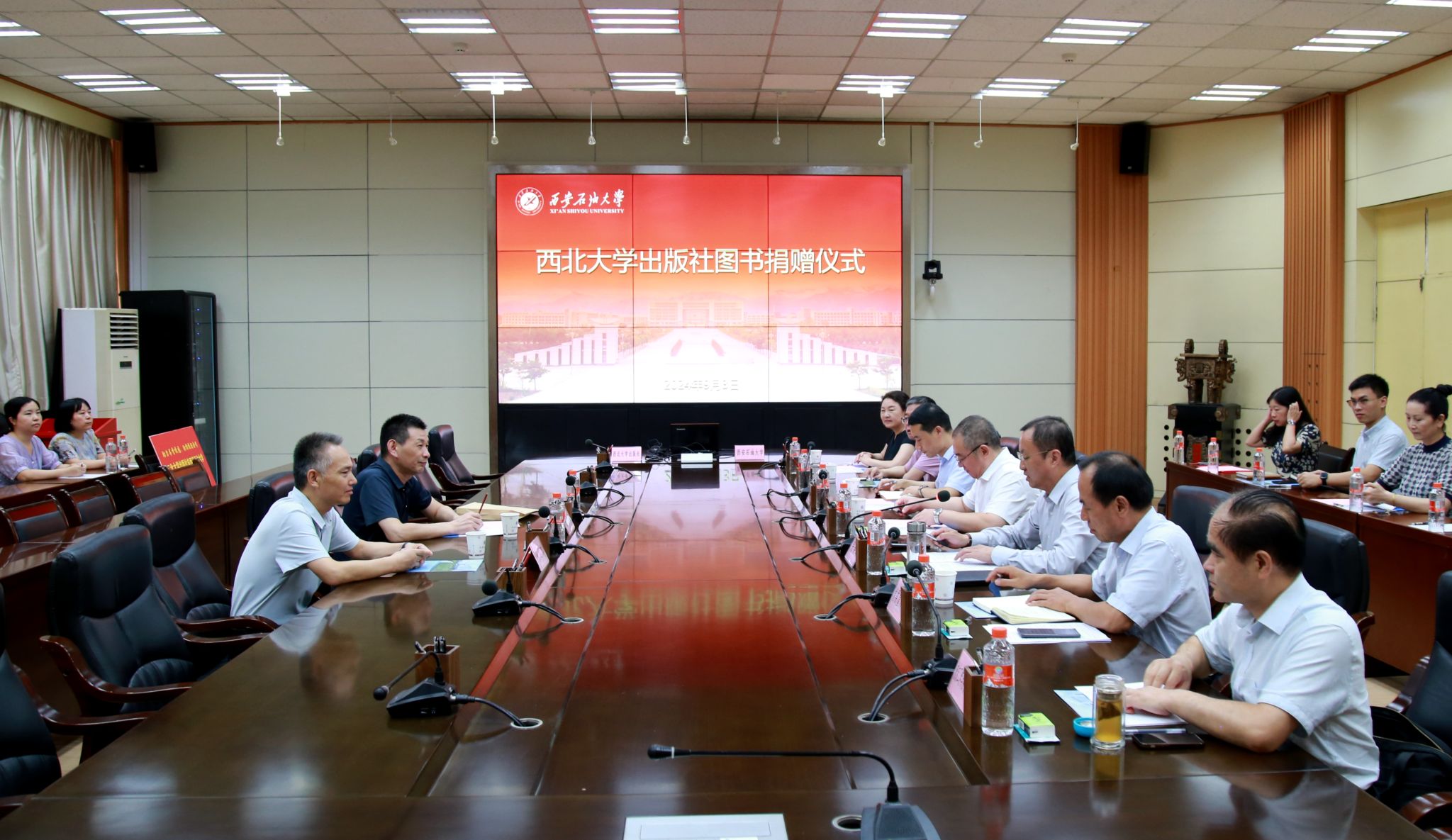 9月3日下午,西北大學出版社圖書捐贈儀式在我校雁塔校區(qū)會議中心第二會議室舉行。校黨委書記常江,西北大學出版社總編桂方海出席捐贈儀式。副校長張榮軍主持捐贈儀式并致歡迎詞。西北大學出版社副總編張運琪代表西北大學出版社向我校捐贈價值11萬余元碼洋的圖書,包含《史記研究集成》《秦東歷史文化研究》《秦漢研究論叢》等多套精品圖書。