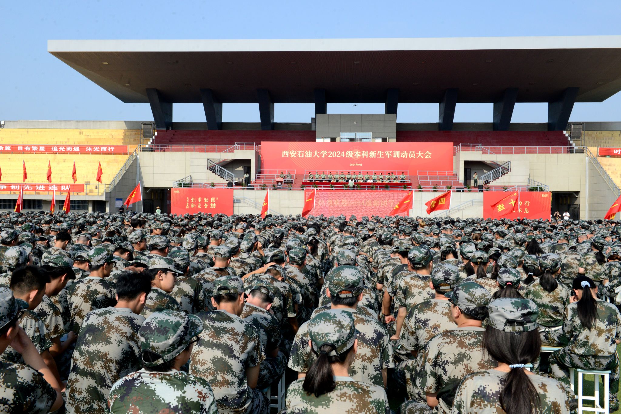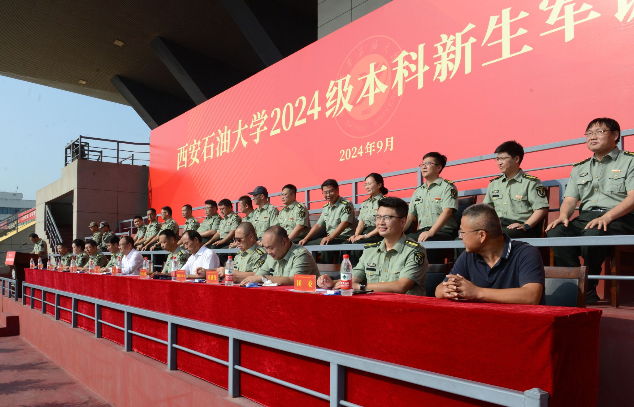 9月4日上午,西安石油大學(xué)2024級本科新生軍訓(xùn)動員大會在鄠邑校區(qū)東田徑場舉行。軍訓(xùn)領(lǐng)導(dǎo)小組組長、副校長趙健,中國人民解放軍某部隊王林上校出席大會。黨委辦公室(校長辦公室)、宣傳部、學(xué)生工作部(處)、保衛(wèi)部(處)、團(tuán)委、教務(wù)處、后勤處、校醫(yī)院等相關(guān)部門負(fù)責(zé)人,全體參訓(xùn)學(xué)生工作干部以及2024級全體本科新生參加大會。