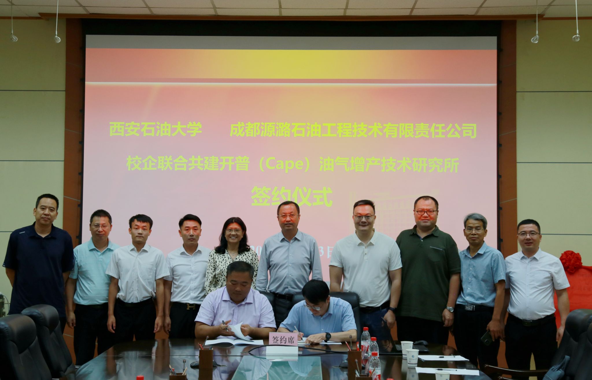 9月13日上午,西安石油大學與成都源潞石油工程技術有限責任公司校企聯(lián)合共建開普(Cape)油氣增產(chǎn)技術研究所簽約儀式在學校雁塔校區(qū)會議中心第一會議室舉行,副校長張榮軍出席簽約儀式,成都源潞石油工程技術有限責任公司總經(jīng)理陳造峰及有關部門負責人,科研處副處長屈樂,化學化工學院領導班子成員、各系主任、分析檢測中心主任參加儀式。