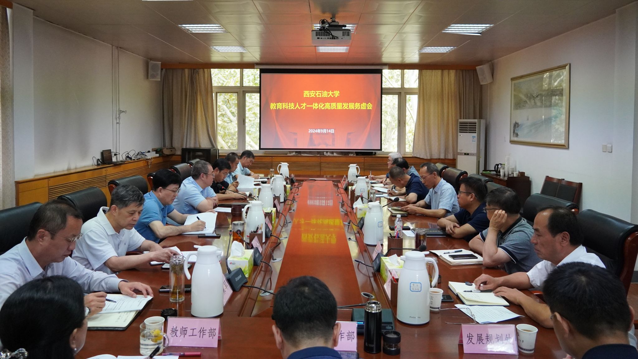 9月14日上午,我校教育科技人才一體化高質量發(fā)展務虛會在雁塔校區(qū)行政樓五樓會議室召開。學校黨政領導常江、王進富、王輝強、程永清、楊戰(zhàn)社、蘇文甫、張榮軍、張君濤、張驍勇、趙健、樊曉民出席會議,校黨委委員種宇宏、趙承勝、吳復雷參加會議,會議由校黨委書記常江主持。
