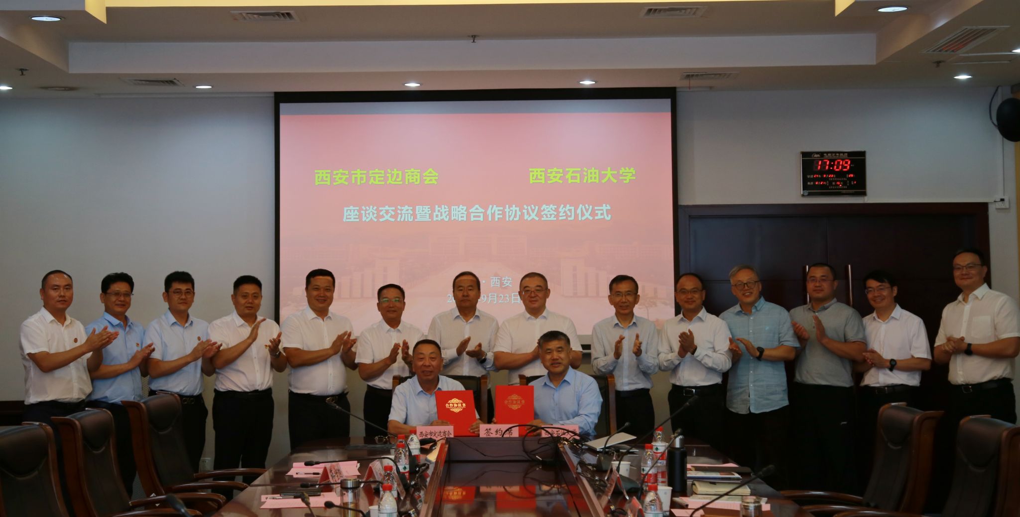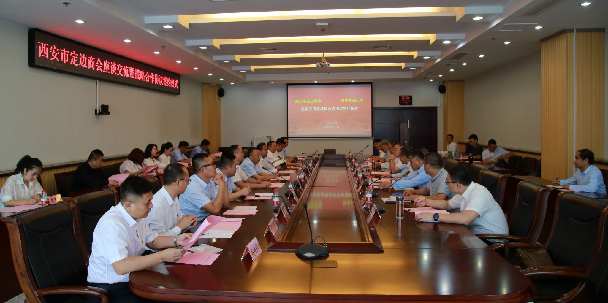 西安市定邊商會部分理事會成員單位;我校科研處、校友工作與合作交流處、石油工程學院、化學化工學院負責人參加會議。