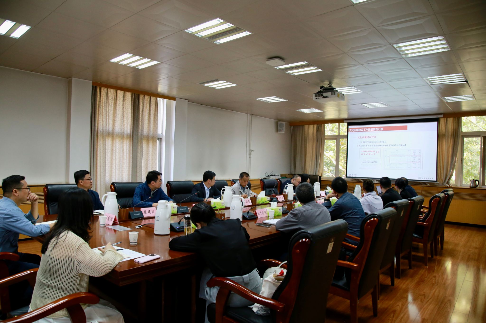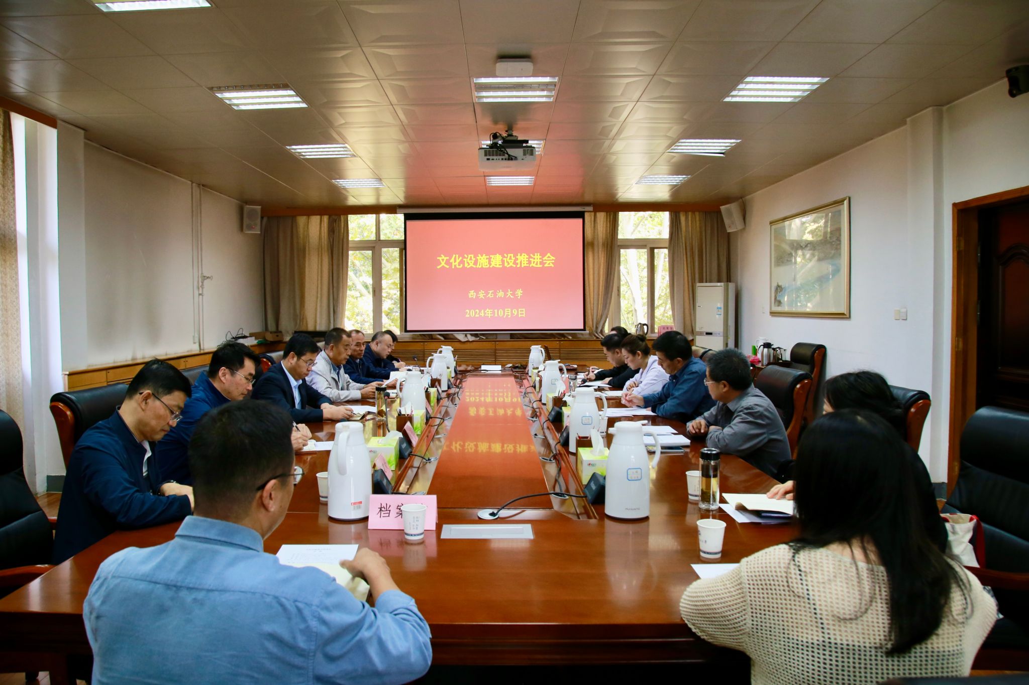 10月9日上午,學(xué)校文化設(shè)施建設(shè)推進(jìn)會(huì)在雁塔校區(qū)行政樓5樓會(huì)議室召開(kāi)。校長(zhǎng)王進(jìn)富出席會(huì)議,校長(zhǎng)辦公室、黨委宣傳部、基建處、后勤處、圖書館、檔案館,人文學(xué)院、音樂(lè)系有關(guān)負(fù)責(zé)人及相關(guān)人員參加會(huì)議。會(huì)議由校黨委副書記程永清主持。