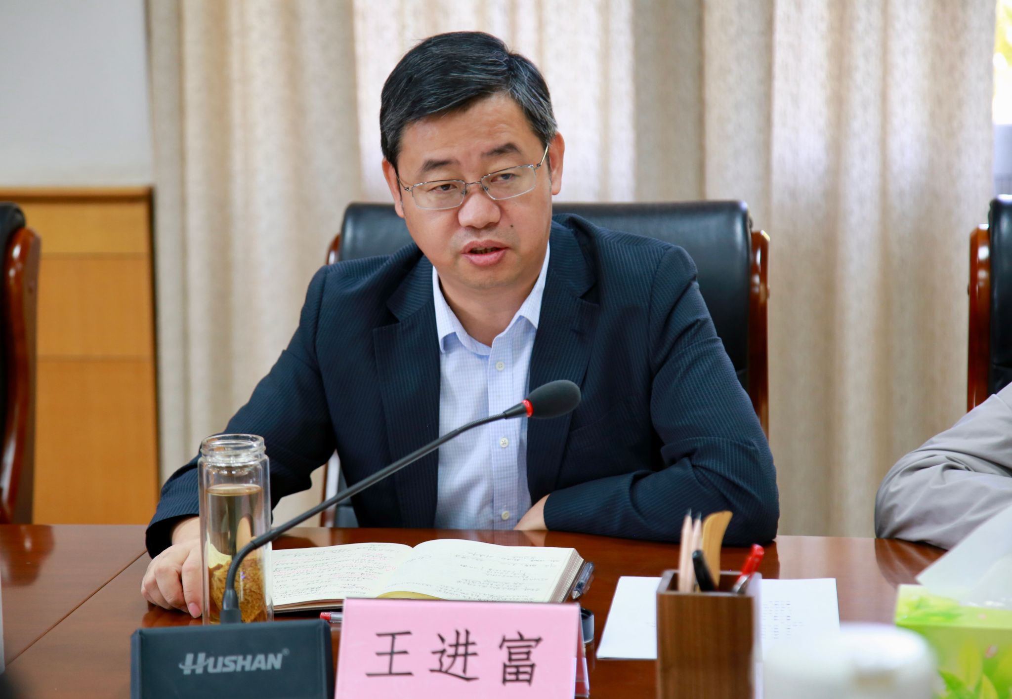 王進(jìn)富在聽(tīng)取有關(guān)文化設(shè)施建設(shè)工作進(jìn)展匯報(bào)后,對(duì)各單位工作推進(jìn)情況給予充分肯定,并表達(dá)了三點(diǎn)感謝:一是感謝陳忠實(shí)、趙季平兩位大師選擇與西石大結(jié)緣,為學(xué)校提供了生動(dòng)的文化底色;二是感謝學(xué)校老領(lǐng)導(dǎo)的遠(yuǎn)見(jiàn),讓兩位大師有一段在學(xué)校創(chuàng)作、生活的經(jīng)歷;三是感謝各位工作人員帶著敬畏之心投入各項(xiàng)挑戰(zhàn)性、開(kāi)創(chuàng)性工作。他強(qiáng)調(diào),校園文化是大學(xué)文化最重要、最關(guān)鍵的物質(zhì)載體,加強(qiáng)校園文化設(shè)施建設(shè),正是通過(guò)對(duì)校園文化中物質(zhì)文化的有益補(bǔ)充,使學(xué)校歷史和價(jià)值追求等西石大精神文化更好地展示,包括其中蘊(yùn)含著的石油精神、鐵人精神,讓廣大師生和社會(huì)公眾看得見(jiàn)、摸得著、感受得到,從而實(shí)現(xiàn)以文化人的教育意義。同時(shí),王進(jìn)富針對(duì)后續(xù)工作提出三點(diǎn)要求:一是高起點(diǎn)設(shè)計(jì)。所有物質(zhì)文化都要折射出精神文化,既要立足現(xiàn)實(shí),也要提升高度,主題明確、主線清晰,讓學(xué)生和社會(huì)公眾看得懂。二是高標(biāo)準(zhǔn)建設(shè)。能夠提升場(chǎng)館藝術(shù)水平且具有收藏價(jià)值的展品要努力爭(zhēng)取,裝修設(shè)計(jì)和建設(shè)標(biāo)準(zhǔn)要與高水準(zhǔn)的藝術(shù)品質(zhì)相對(duì)應(yīng)。三是高品質(zhì)塑造。設(shè)施建成不是最終目的,要注重設(shè)施功能可拓展性,為進(jìn)一步搭建文化交流基地、學(xué)術(shù)研討平臺(tái)、藝術(shù)教育場(chǎng)地預(yù)留可發(fā)展空間,通過(guò)發(fā)掘更多功能讓各項(xiàng)文化設(shè)施保持活力。
