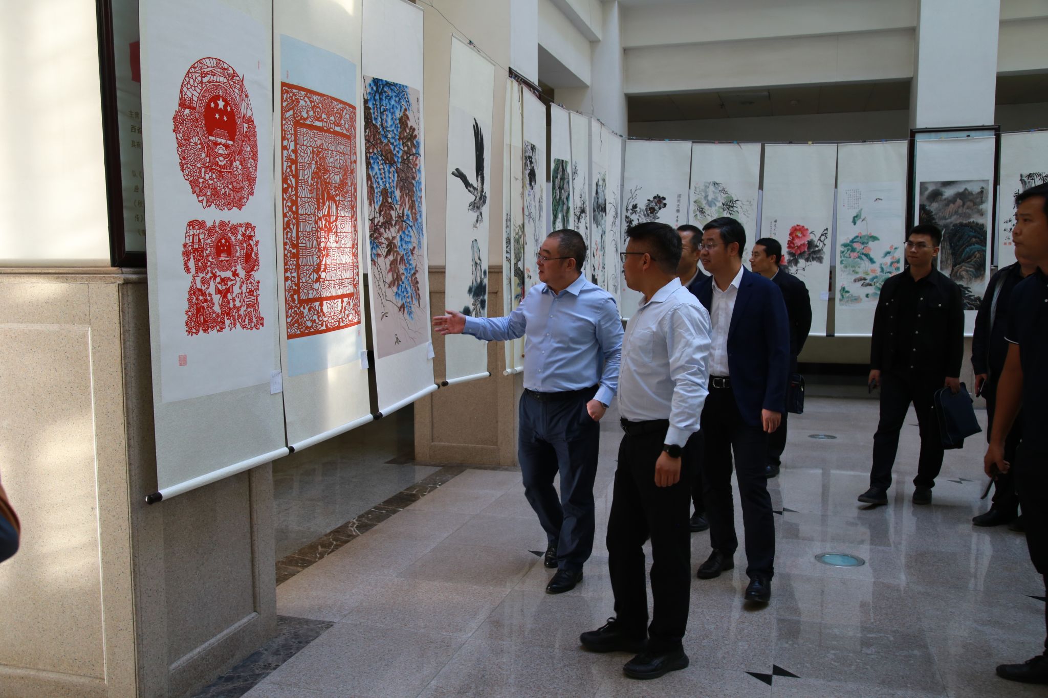 會(huì)后,學(xué)校領(lǐng)導(dǎo)與老壽星代表合影留念。常江、王進(jìn)富、張驍勇參觀了離退休教職工書畫攝影藝術(shù)展。