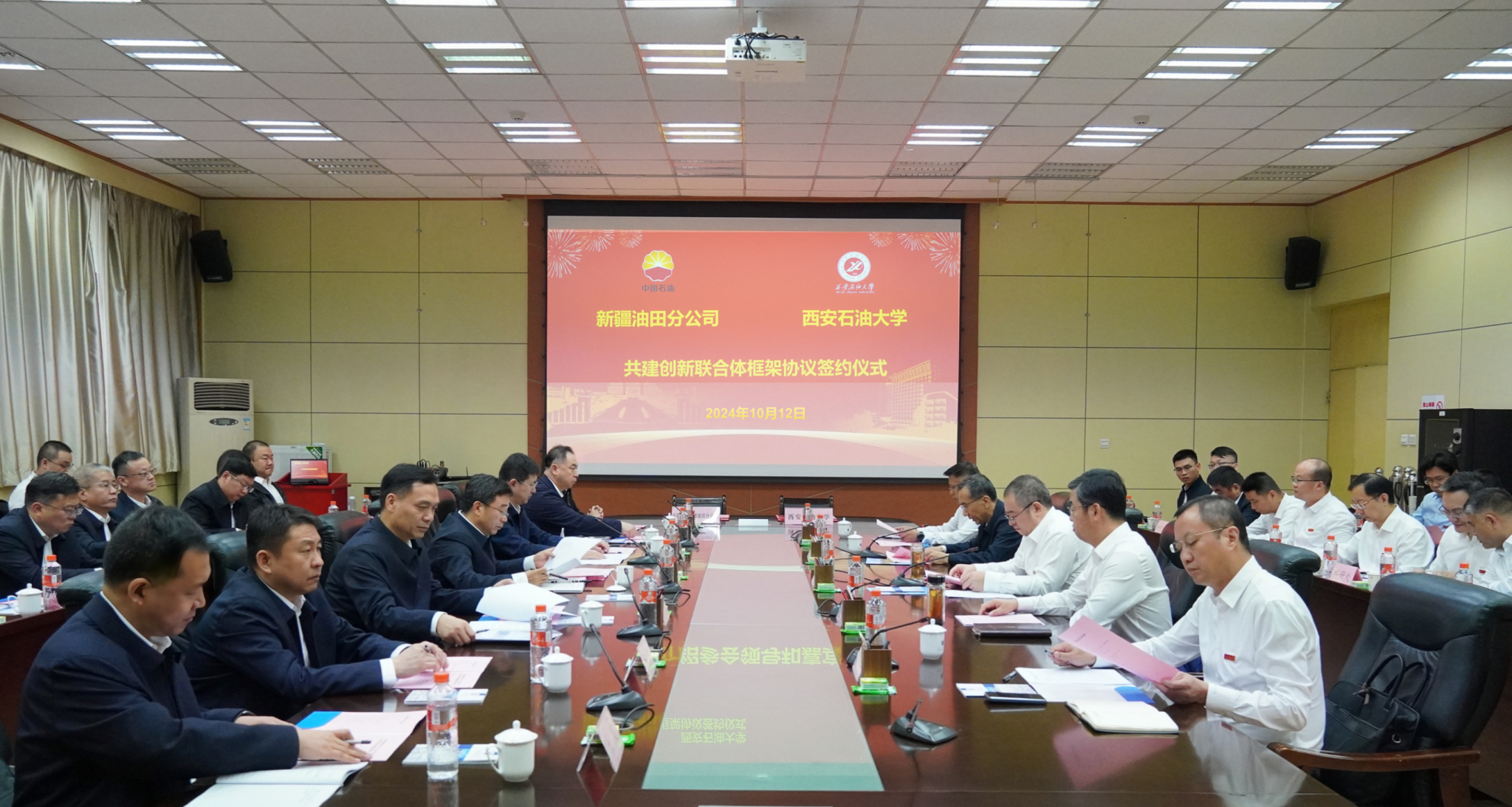 10月12日下午,在我校建校73周年校慶日,學(xué)校與中國石油新疆油田分公司在雁塔校區(qū)會議中心第一會議室簽署共建創(chuàng)新聯(lián)合體框架協(xié)議,并舉辦了校企合作技術(shù)交流會。校黨委書記常江、校長王進富、副校長張榮軍、副校長張驍勇,新疆油田分公司黨委副書記、總經(jīng)理魏兆勝,副總經(jīng)理劉洪洲、副總經(jīng)理毛新軍、公司首席企業(yè)專家孫新革出席簽約儀式和技術(shù)交流會,學(xué)校相關(guān)職能部門和院(系)負責(zé)人、科研團隊代表,新疆油田分公司各相關(guān)職能部門負責(zé)人和技術(shù)專家參加了活動。活動由校黨委副書記張木主持。