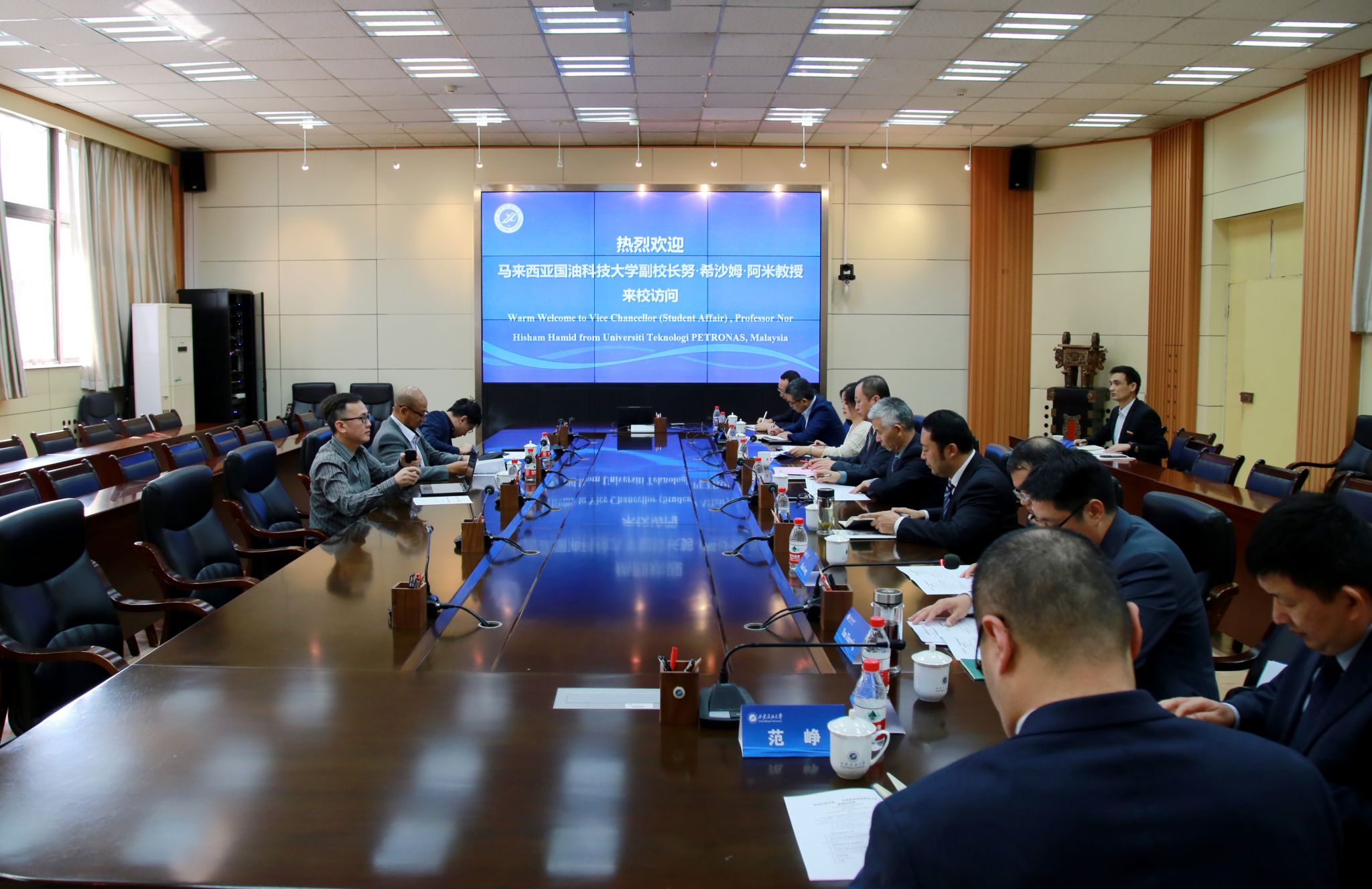 張榮軍首先代表學(xué)校對(duì)努·希沙姆·哈米德一行到訪表示熱烈歡迎。他表示,馬來西亞國油科技大學(xué)是我校國際友好學(xué)校與國際合作的重要戰(zhàn)略伙伴之一。近年來雙方交流密切、互動(dòng)頻繁,成功開展多項(xiàng)合作。在雙方良好合作基礎(chǔ)上,學(xué)校希望深入推進(jìn)兩校高端互訪、教師訪學(xué)、學(xué)生交流、聯(lián)合科研等方向合作,推進(jìn)新合作、結(jié)出新碩果,為中馬教育合作和人文交流繼續(xù)添磚加瓦。