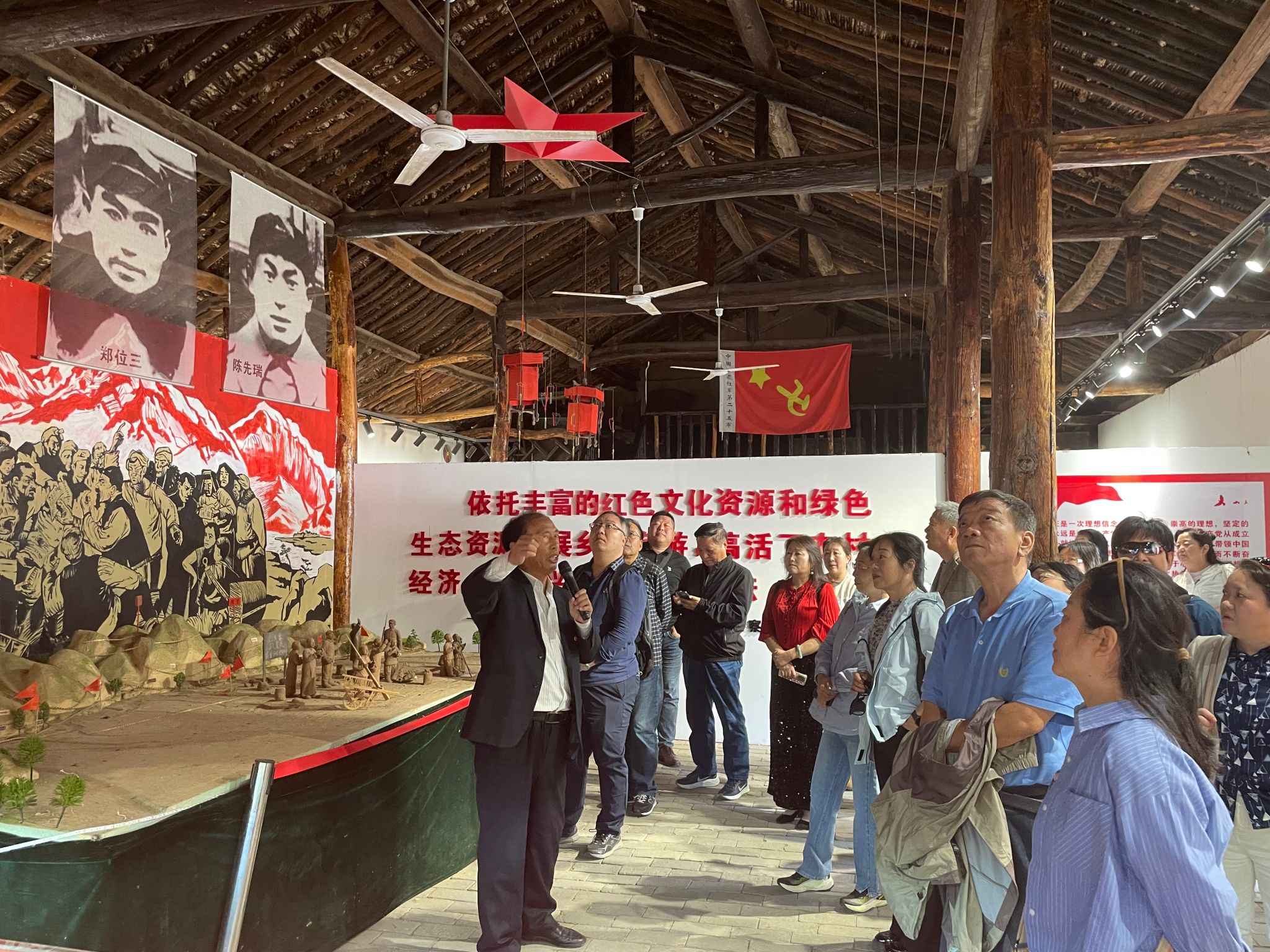隨后,全體人員來到紅軍過境戶縣陳列館。大家認(rèn)真聆聽講解員介紹上世紀(jì)三十年代紅四方面軍、紅二十五軍和紅七十四師三支紅軍在長征進(jìn)程中過境戶縣及粟峪口村的歷史事件。展柜里字跡發(fā)黃的布告命令、破舊的草鞋、紅軍用過的物件和一樁樁感人故事,深刻再現(xiàn)了中國共產(chǎn)黨在長征過程中的苦難與輝煌,再現(xiàn)了革命先輩為了中華民族的獨立和解放所付出的艱苦努力。