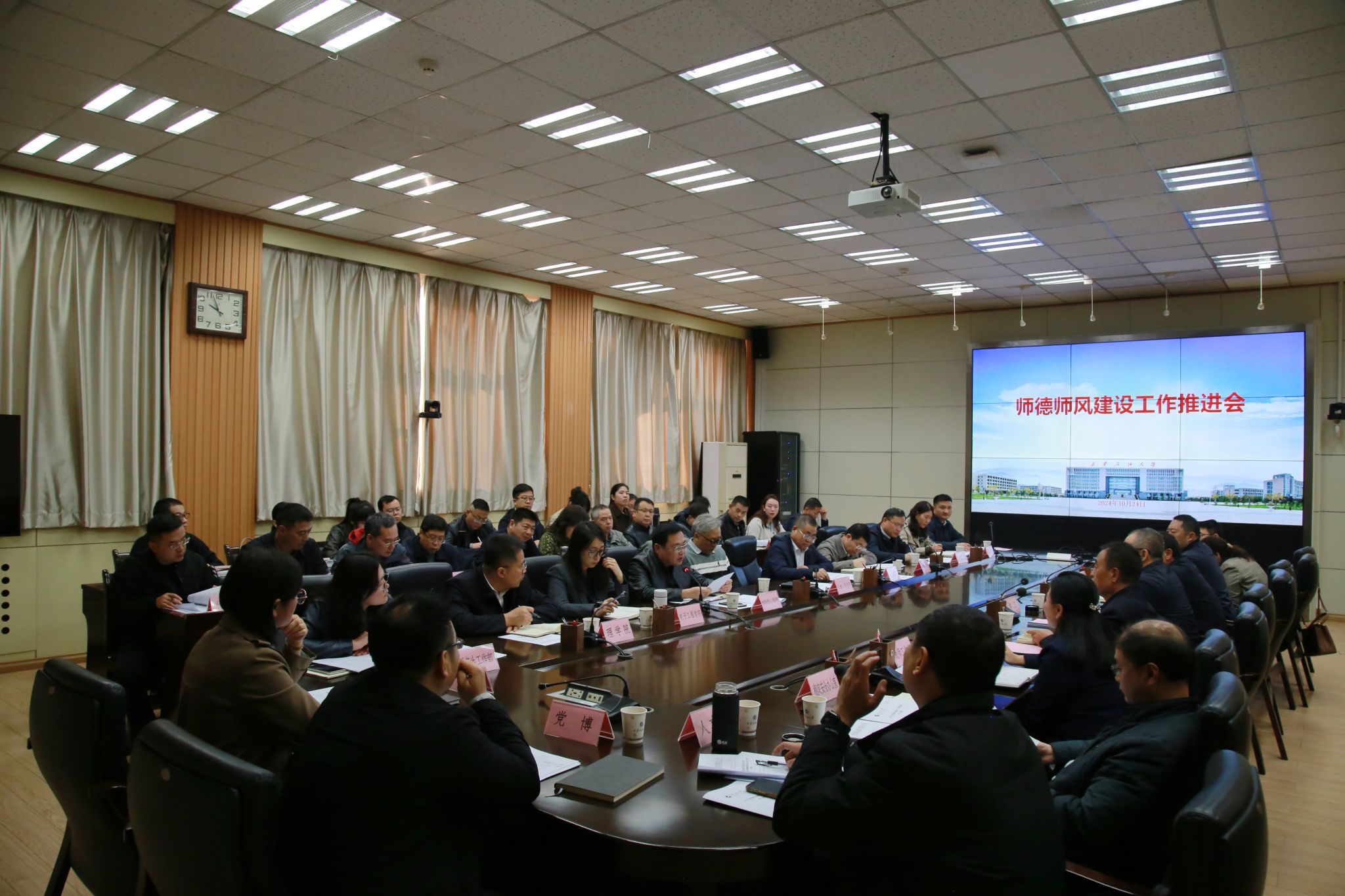 10月24日上午,學(xué)校在雁塔校區(qū)會(huì)議中心第二會(huì)議室召開2024年師德師風(fēng)建設(shè)工作推進(jìn)會(huì)。校黨委書記常江出席會(huì)議并講話。校黨委副書記程永清主持會(huì)議,相關(guān)職能部門、各教學(xué)院(系)負(fù)責(zé)人和教師代表參加會(huì)議。