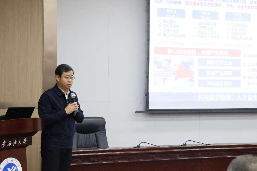 王進富校長以“加速四鏈融合,培育新質(zhì)生產(chǎn)力賦能油氣行業(yè)高質(zhì)量發(fā)展”為主題發(fā)表演講,深入剖析了油氣行業(yè)作為陜西省關(guān)鍵的能源支柱產(chǎn)業(yè),在新質(zhì)生產(chǎn)力發(fā)展背景下所面臨的轉(zhuǎn)型方向。他著重指出了四鏈融合(創(chuàng)新鏈、產(chǎn)業(yè)鏈、資金鏈、人才鏈)對于油氣行業(yè)培育新質(zhì)生產(chǎn)力、實現(xiàn)高質(zhì)量發(fā)展的重要性,并具體講解了在實際操作中如何加速四鏈融合,為油氣行業(yè)的可持續(xù)發(fā)展提供了新的思路和方法,使與會者對油氣行業(yè)的發(fā)展有了更深入的認識和理解。