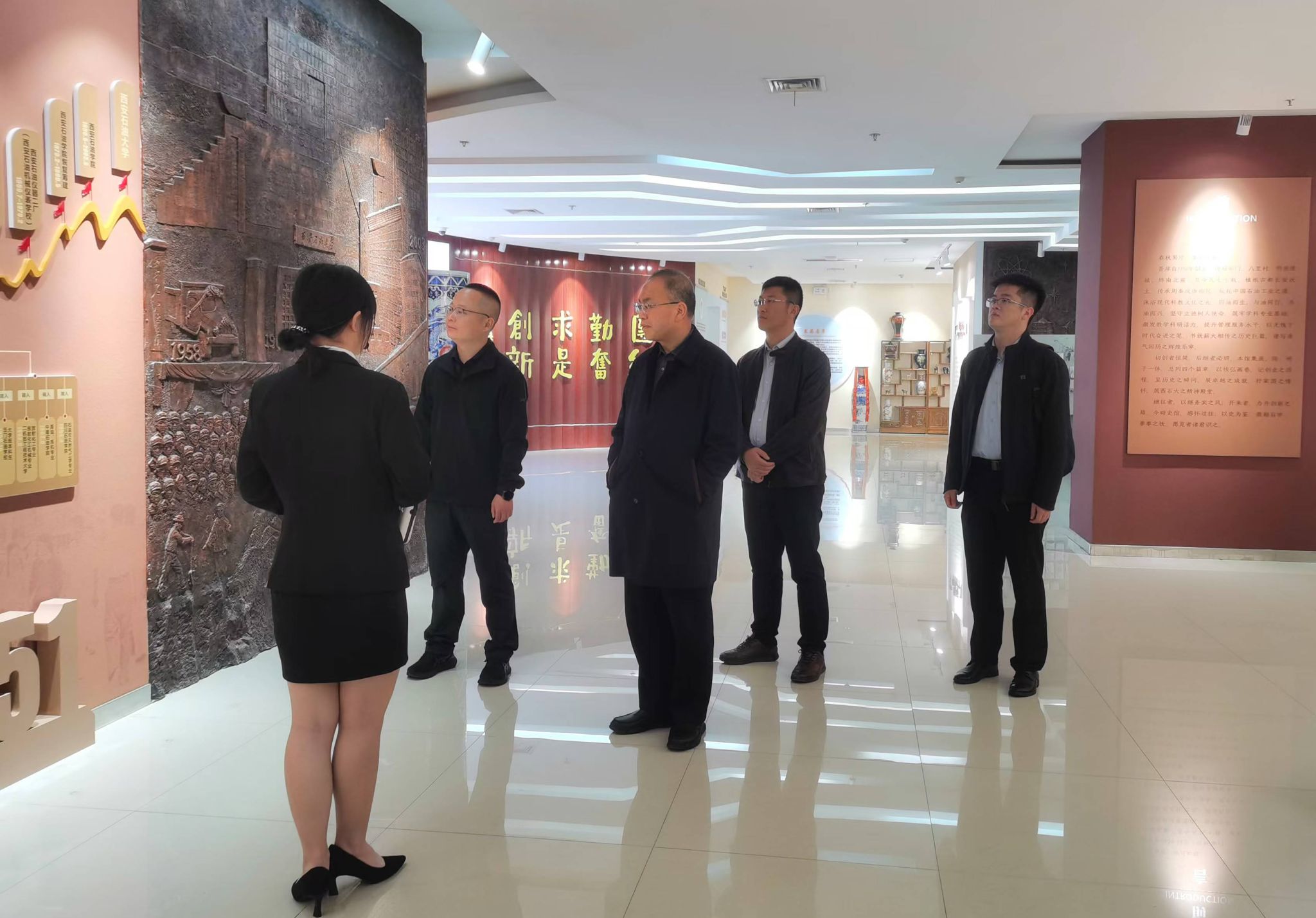 會(huì)上,我校就共青團(tuán)工作進(jìn)行了匯報(bào),贈(zèng)送了紀(jì)念品,雙方進(jìn)行了深入交流。會(huì)前,丁林一行參觀了我校鐵人館和校史館。