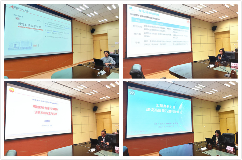 西安石油大學(xué)期刊中心副主任張馨、《油氣儲運(yùn)》雜志社社長關(guān)中原、中國石油工程材料研究院標(biāo)準(zhǔn)信息與戰(zhàn)略研究所副所長高建忠、《測井技術(shù)》編輯部副主任杜雪威分別以《西安石油大學(xué)學(xué)報(自然科學(xué)版)辦刊實(shí)踐與思考》《辦刊工作的底層邏輯與方法論》《匯聚辦刊力量 建設(shè)高質(zhì)量石油科技期刊》為題做了研討會主題報告。他們的報告主題鮮明,觀點(diǎn)突出,內(nèi)容翔實(shí),有助于激發(fā)創(chuàng)新潛力啟迪辦刊思維,提高編輯編審和專題策劃能力,獲得與會人員的一致肯定和高度稱贊。