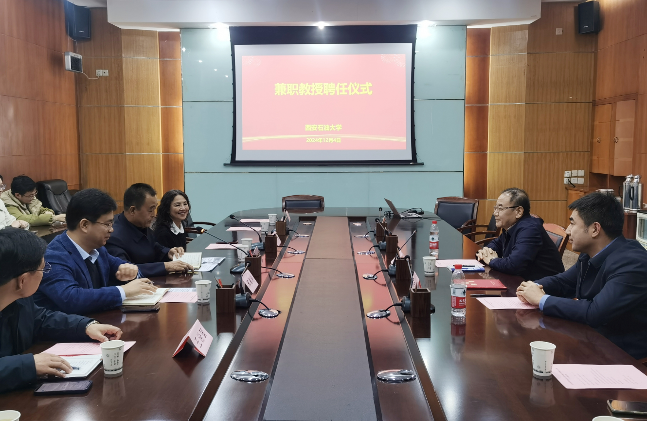 12月4日下午,西安長慶同欣石油科技有限公司首席專家、原長慶油田副總地質(zhì)師席勝利受聘為我校兼職教授,聘任儀式在雁塔校區(qū)會議中心舉行。我校黨委副書記程永清,西安長慶同欣石油科技有限公司科技產(chǎn)業(yè)化部主任羅梓軒,新能源學(xué)院相關(guān)負(fù)責(zé)人、青年教師代表參加聘任儀式。