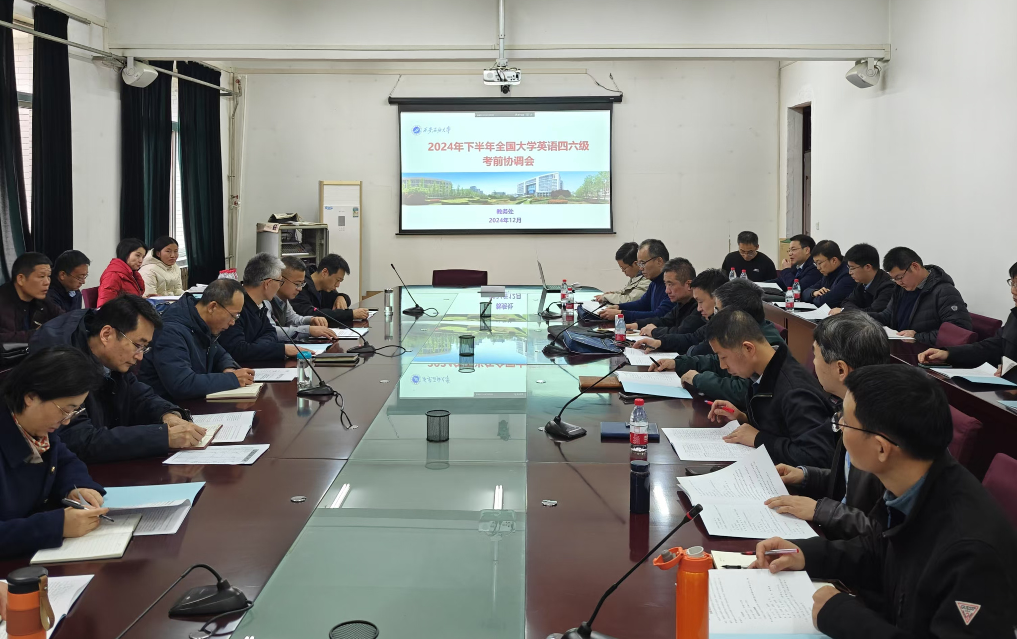 為確保本次考試工作的順利進行,12月9日下午在鄠邑校區(qū),學(xué)校專門召開了2024年下半年全國大學(xué)英語四六級考試工作協(xié)調(diào)會,安排部署各項工作。12月13日,教務(wù)處分別在雁塔校區(qū)、鄠邑校區(qū)舉辦監(jiān)考培訓(xùn)會,著重強調(diào)了以往考試中存在的各種易發(fā)問題、突發(fā)狀況,明確監(jiān)考教師職責(zé),要求參會監(jiān)考人員對工作手冊進行深入地自主學(xué)習(xí),熟悉操作規(guī)程,進一步強化各位監(jiān)考教師的責(zé)任意識、安全意識和違紀違規(guī)情況甄別與處理能力。