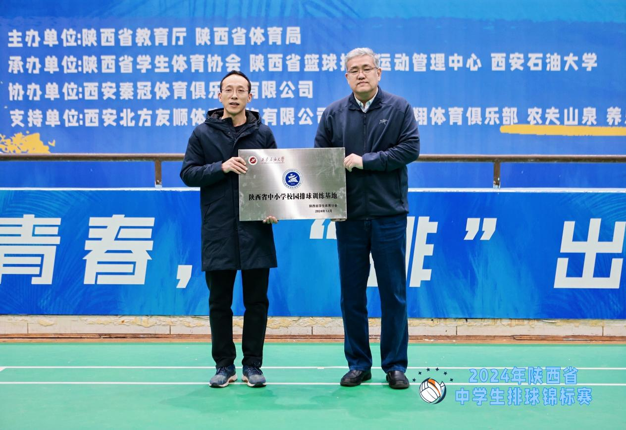 閉幕式上,張君濤代表學(xué)校致辭,他對獲獎代表隊和運動員表示熱烈祝賀,向各代表隊的領(lǐng)隊、教練員和裁判員表示衷心的感謝,并希望全體運動員繼續(xù)努力,為陜西省青少年排球事業(yè)的發(fā)展貢獻更多力量。張原耕為我校授予了“陜西省中小學(xué)校園排球訓(xùn)練基地”牌匾,張君濤代表學(xué)校接牌。