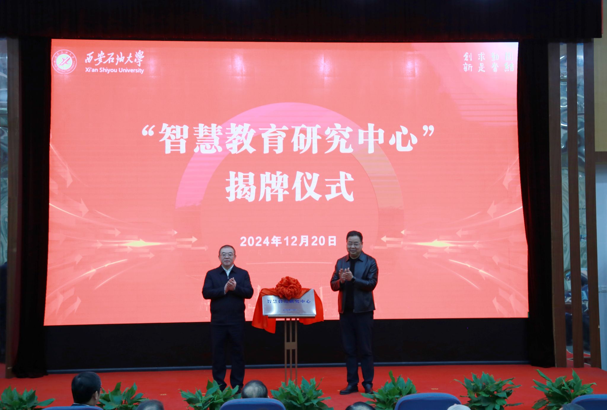 校黨委書記常江、陜西省教育廳教育信息化處處長(zhǎng)李享陽(yáng)共同為“智慧教育研究中心”揭牌。