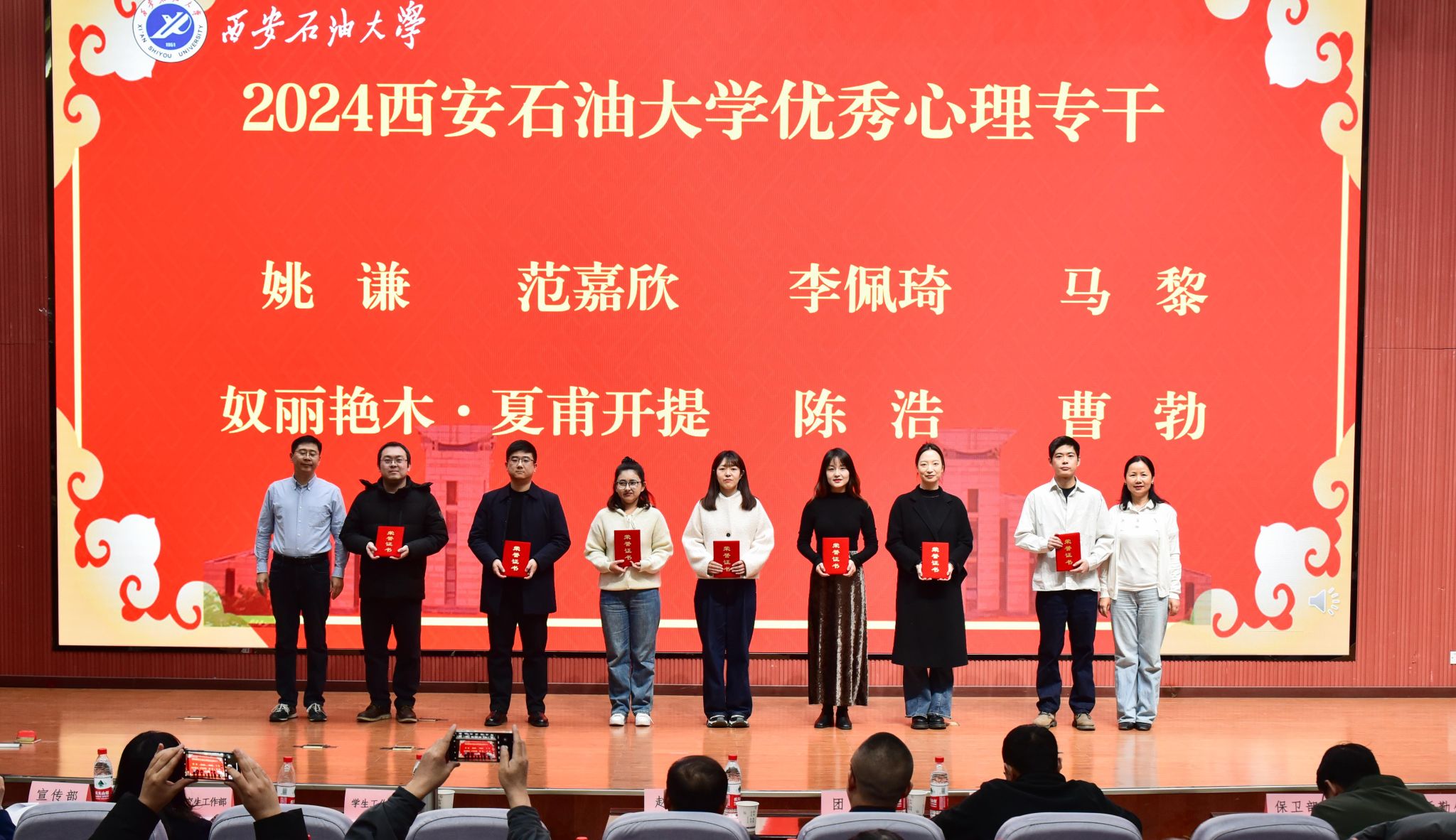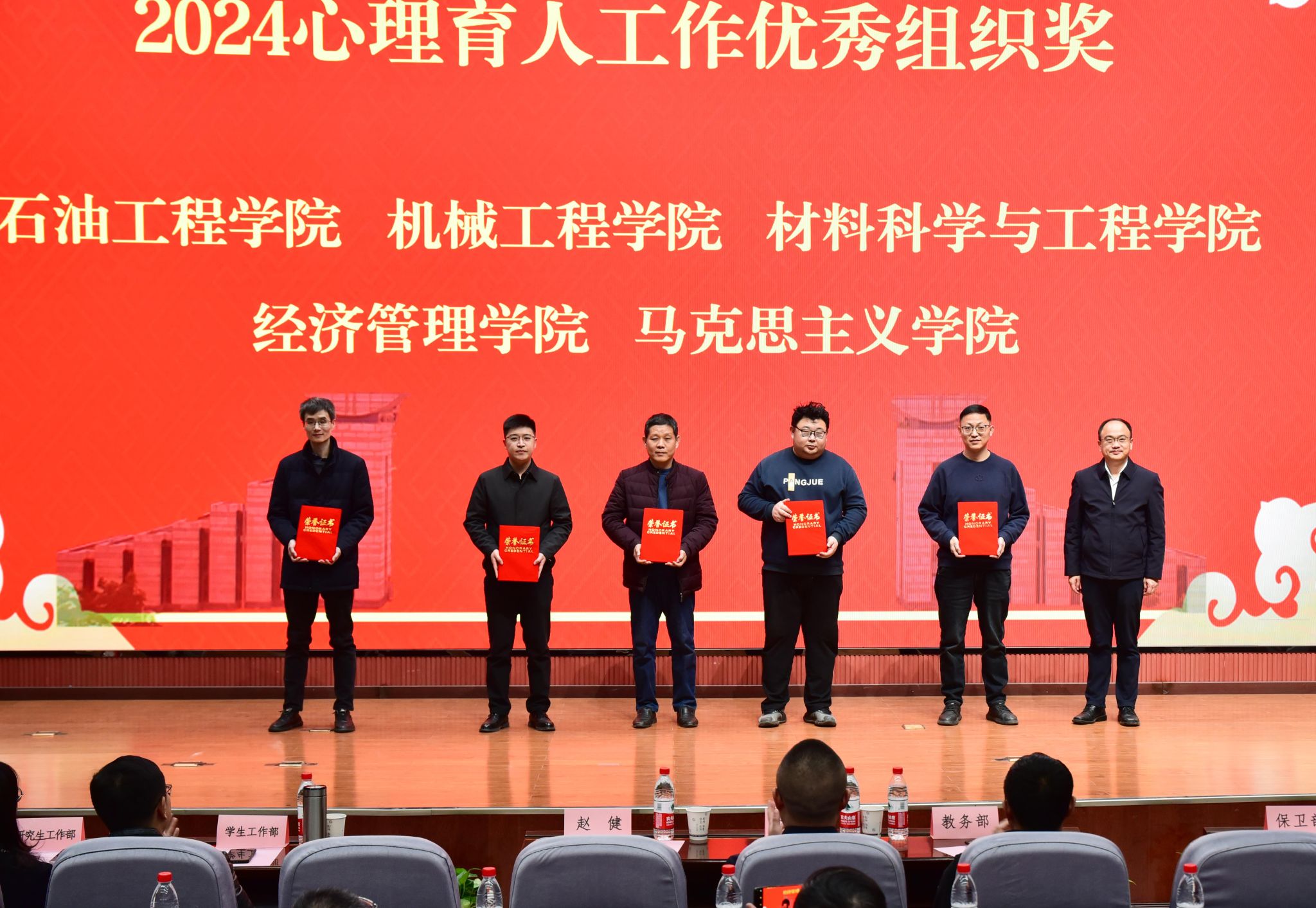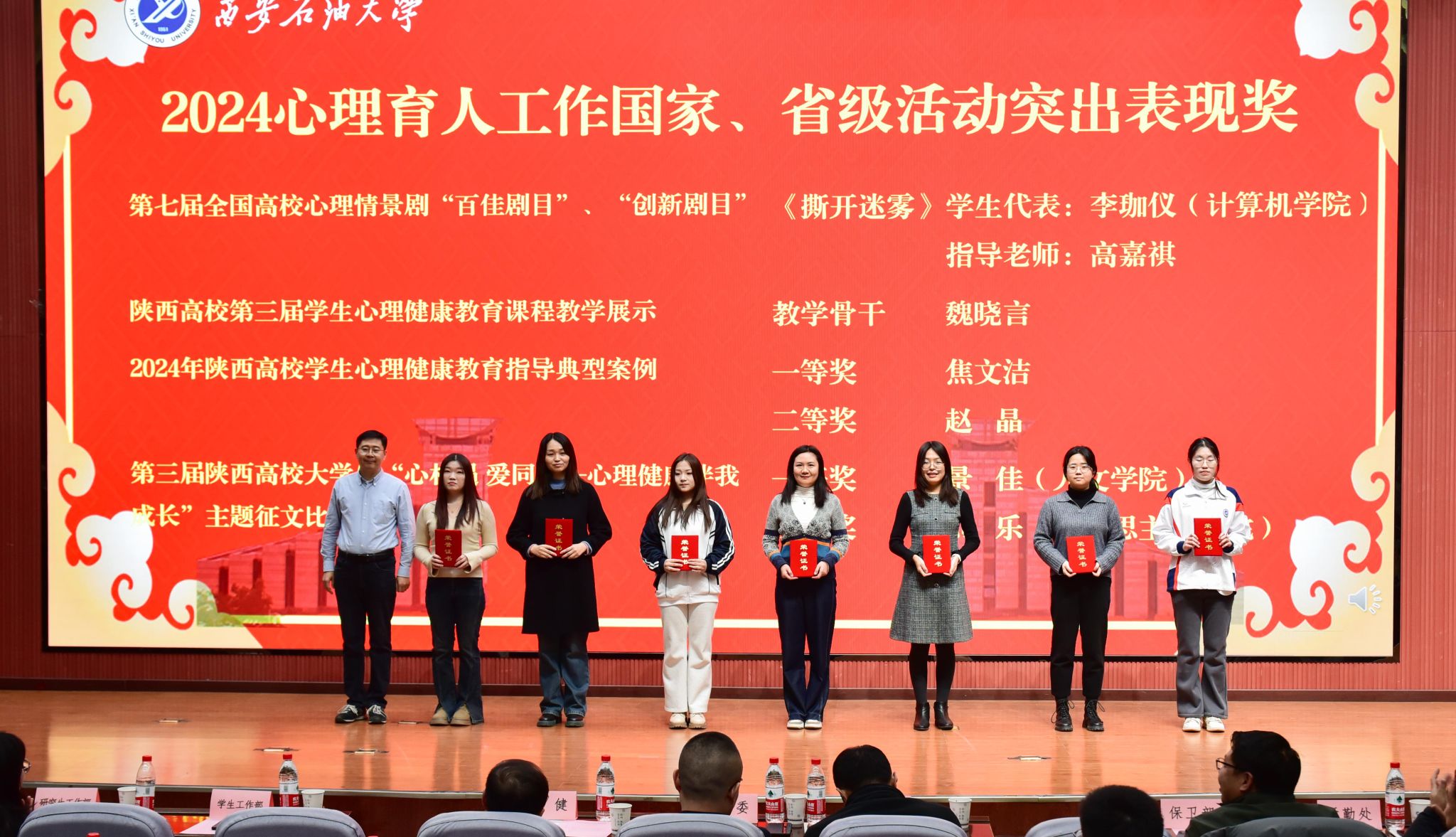 學(xué)生工作部部長王亮宣讀了我校師生在2024年國家、省級心理健康教育工作中的獲獎情況以及《關(guān)于西安石油大學(xué)2024心理育人工作先進(jìn)單位和個(gè)人的表彰決定》。與會領(lǐng)導(dǎo)為獲獎個(gè)人及集體頒獎。