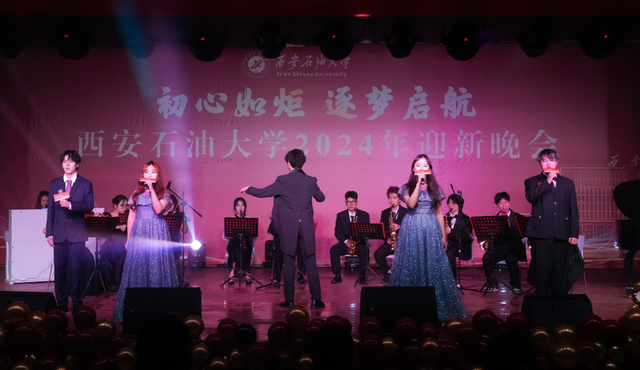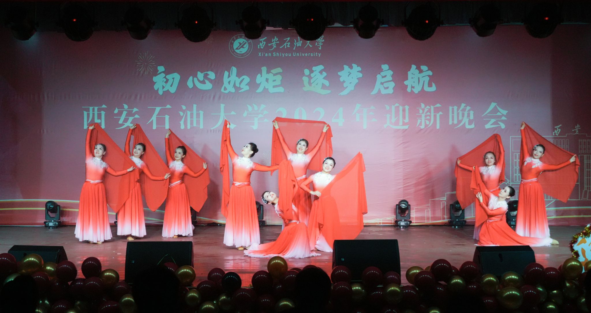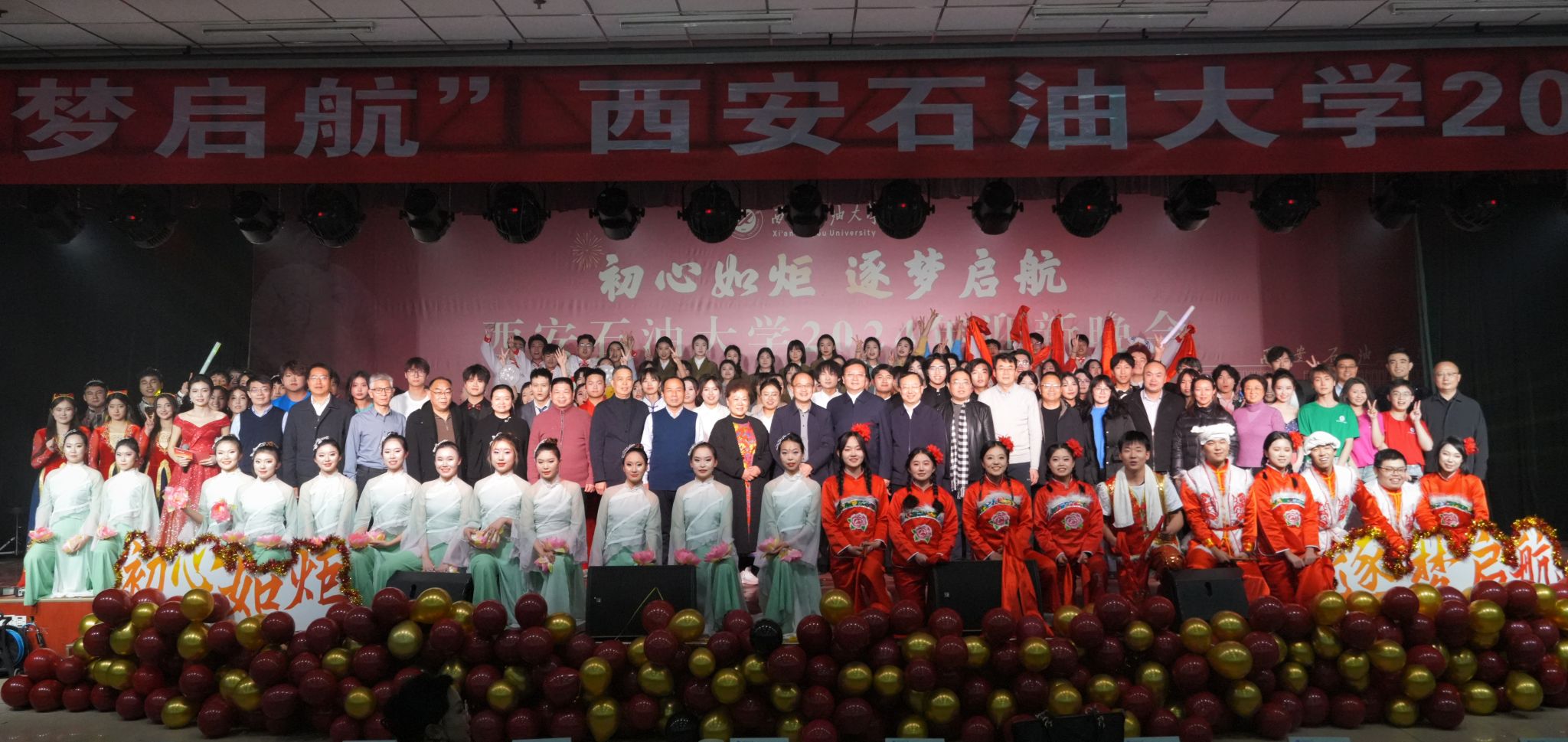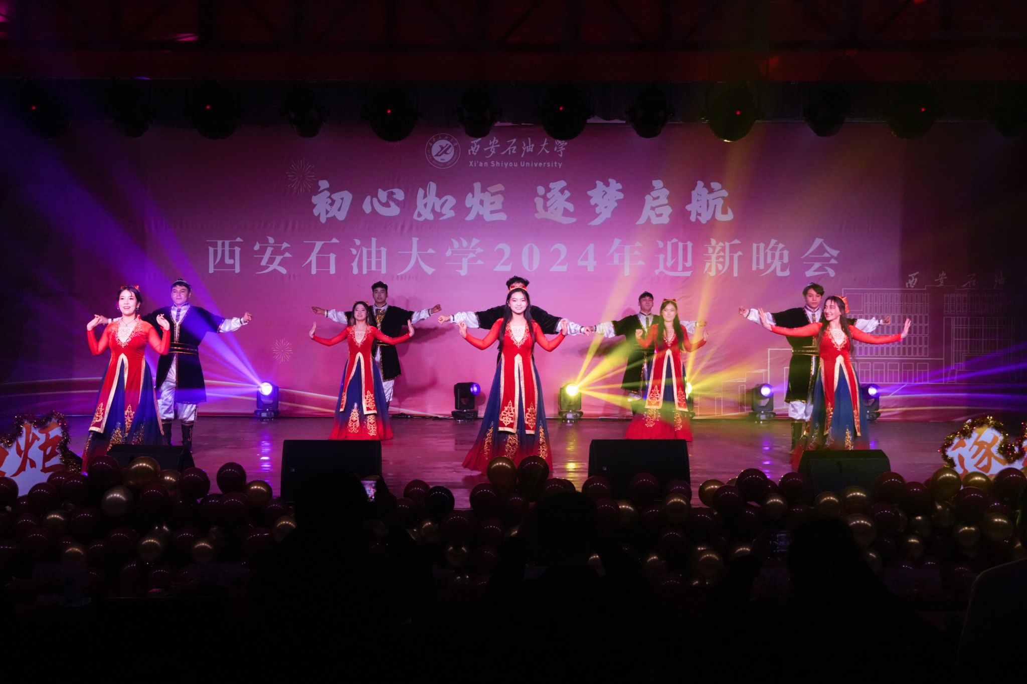 12月30日晚,“初心如炬 逐夢啟航”西安石油大學2024年迎新晚會在鄠邑校區(qū)騰輝大學生活動中心舉辦。副校長趙健出席晚會,學校相關職能部門、院(系)負責同志,教師代表,學生代表等800余人觀看晚會。