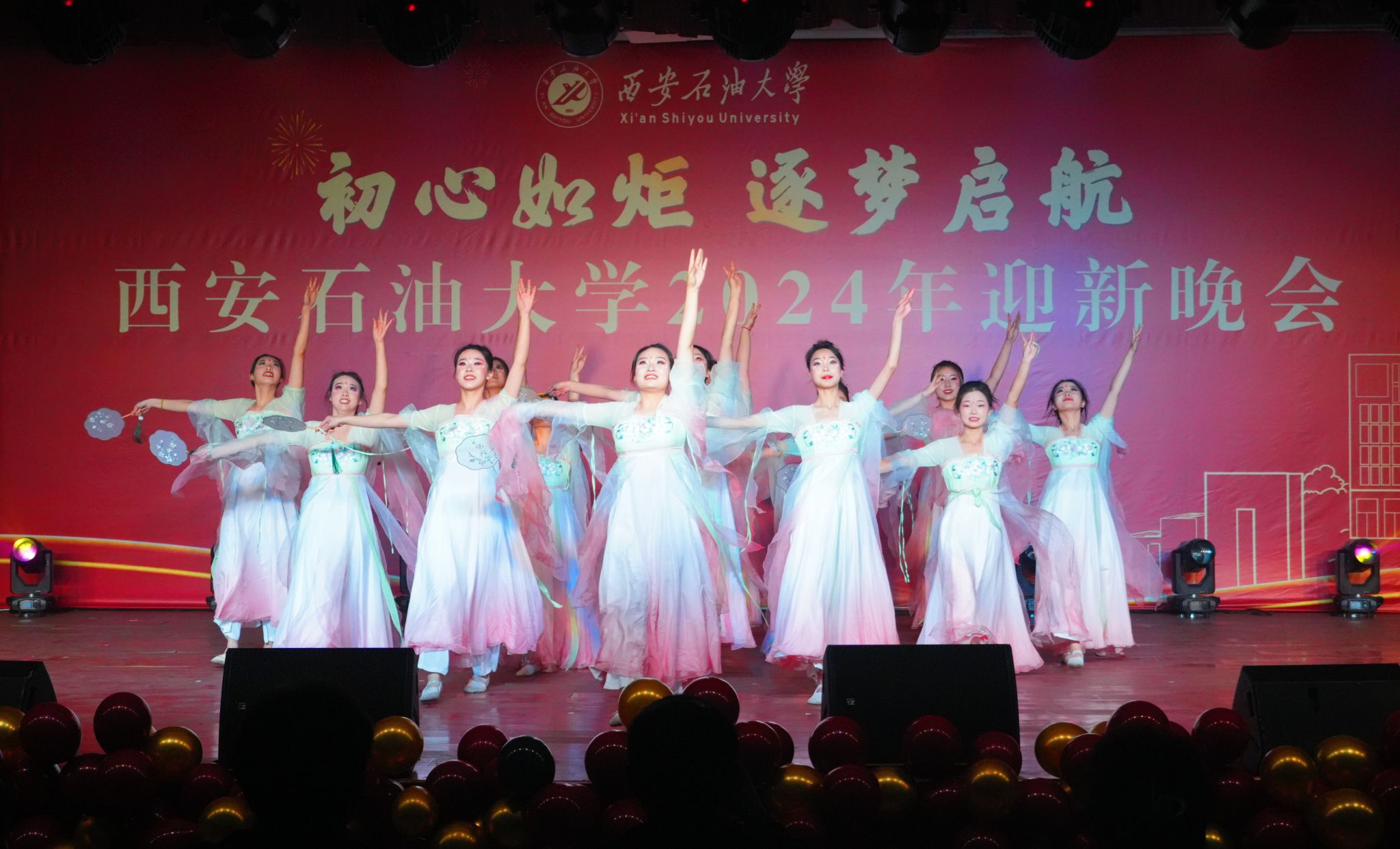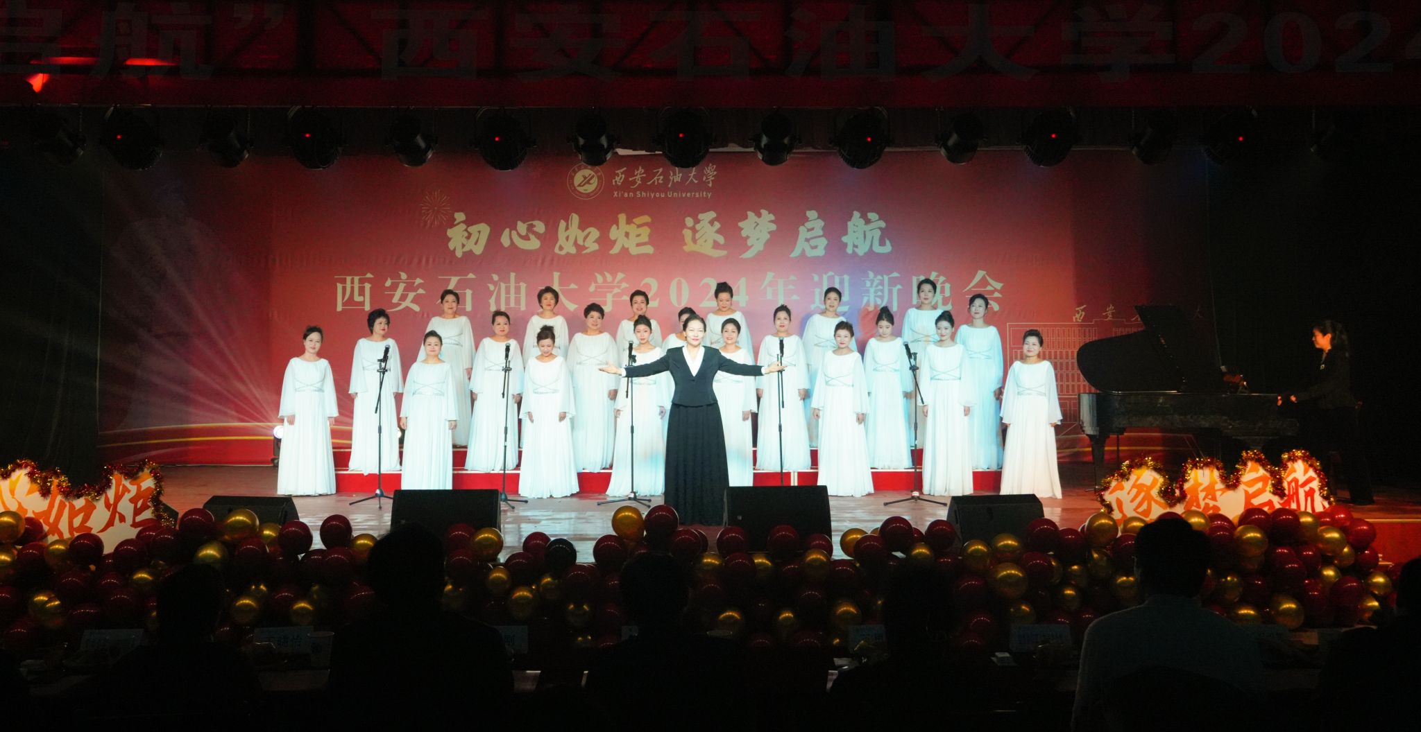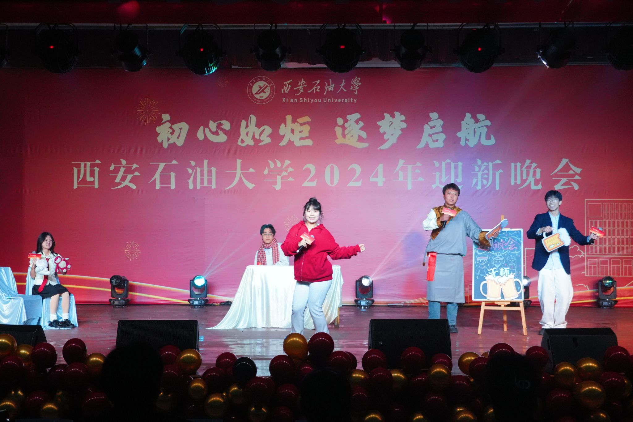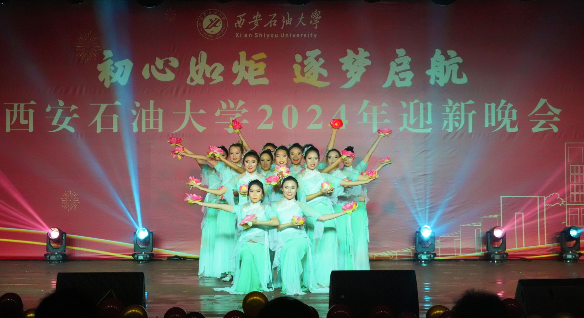12月30日晚,“初心如炬 逐夢啟航”西安石油大學2024年迎新晚會在鄠邑校區(qū)騰輝大學生活動中心舉辦。副校長趙健出席晚會,學校相關職能部門、院(系)負責同志,教師代表,學生代表等800余人觀看晚會。