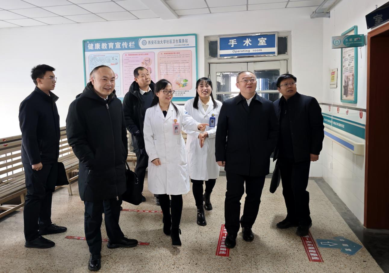 為進(jìn)一步做好冬季流行性疾病防控,確保學(xué)校傳染病防控各項工作有序推進(jìn),堅決筑牢校園健康防線,1月10日下午,校黨委書記常江在雁塔校區(qū)就傳染病防控及校醫(yī)院工作開展情況進(jìn)行考察調(diào)研,并與大家座談交流,副校長張驍勇,黨委辦公室(校長辦公室)、人事處、財務(wù)處、后勤處等部門的主要負(fù)責(zé)人陪同調(diào)研并參加了座談會。