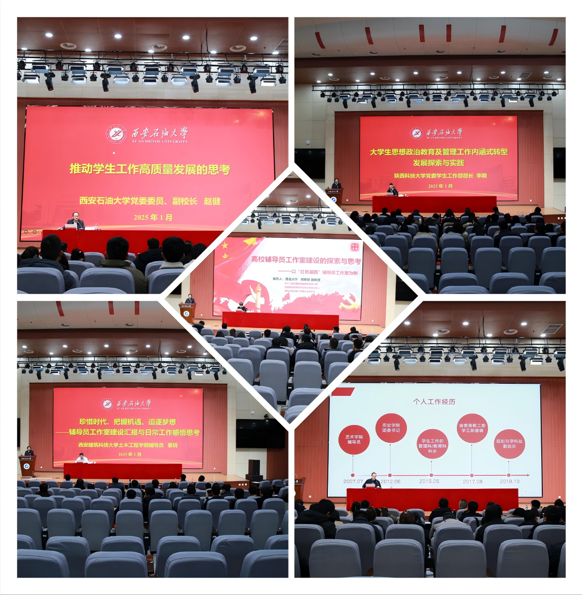 在學工干部專題培訓中,副校長趙健以《立足新時代對標新要求打造新學工——推進我校學生工作高質量發(fā)展的思考》為題向全體學工干部作專題輔導報告。他從打造新學工應秉持的基本理念、應運用的思想方法、應完善的體系架構、應把握的主要關系和應具備的能力作風等五個方面深刻剖析了推動學生工作高質量發(fā)展的實踐路徑,分析了學生工作的現(xiàn)狀與不足,提出了新學工的探索與思考。他強調(diào)學校學生工作要以培塑“西石大學工”品牌為牽引,以鐵人精神育人為特色,以人才培養(yǎng)為主線,以安全穩(wěn)定為底線,以學工隊伍能力建設為保障,實施“七持續(xù)”,加快推進學生工作由管理型向服務型、發(fā)展型轉變的總體工作思路,著力解決高校思想政治工作價值引領、內(nèi)涵建設、治理體系、責任落實、工作方法中存在的問題,實現(xiàn)人人、時時、處處育人的大思政格局。報告對提升學生工作育人質量具有很強的指導意義,為學工干部履職盡責和事業(yè)發(fā)展提供了新策略。同時,陜西科技大學黨委學生工作部部長李曉作《大學生思想政治教育及管理工作內(nèi)涵式轉型發(fā)展探索與實踐》專題講座,分析了大學生思想政治教育及管理工作轉型的必要性,結合工作案例介紹了思政教育及管理工作內(nèi)涵式發(fā)展的探索,有助于學工干部提升學生工作水平和質量。西北大學生命科學學院組織員、輔導員、副教授常雅慧作《高校輔導員工作室建設的探索與思考——以“紅色基因”輔導員工作室為例》專題講座,講授了輔導員工作室建設的出發(fā)點、建設路徑和落腳點,分享了工作室在學生黨建工作中的實踐經(jīng)驗和深刻思考,啟發(fā)了輔導員對學生工作的創(chuàng)新思路。西安建筑科技大學土木工程學院輔導員綦玥作《珍惜時代、把握機遇、追逐夢想——輔導員工作室建設匯報與日常工作感悟思考》專題講座,以“溪澗清源”輔導員工作室的實踐與探索引發(fā)輔導員專業(yè)化職業(yè)化專家化的工作反思,為高質量開展學生工作提供了寶貴的實踐參考。西北大學發(fā)展規(guī)劃與學科建設處副處長薛原作《對于學生工作的一些個人體會與思考》專題講座,從輔導員的自我修養(yǎng)闡釋了輔導員自我認知與工作方法,結合以生為本探索了輔導員工作本位選擇與體系構建,為提升輔導員工作質效提供了有力指導。
