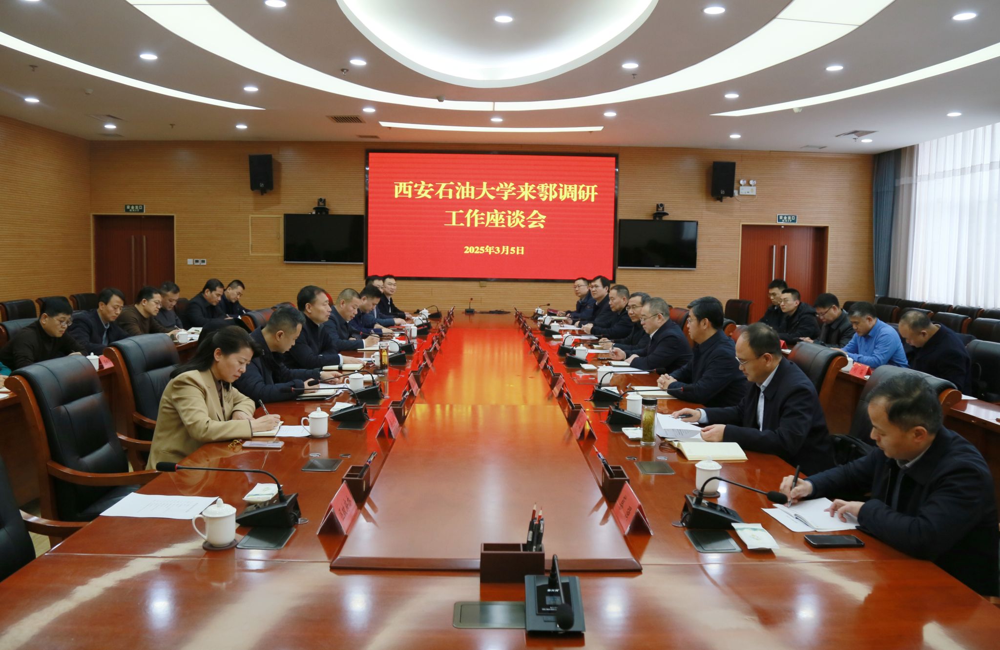 鄠邑區(qū)委辦、區(qū)政府辦、區(qū)發(fā)改委、區(qū)科技工信局、區(qū)住建局、區(qū)交通局、區(qū)城管執(zhí)法局、區(qū)投資商務(wù)局、資源規(guī)劃分局、五竹街道、灃京工業(yè)園主要負責同志;我校黨委辦公室(校長辦公室)、保衛(wèi)處、發(fā)展規(guī)劃處、科研處、基建處、校友工作與合作交流處、后勤處負責同志以及駐鄠校友企業(yè)家代表邱冰山參加座談會。