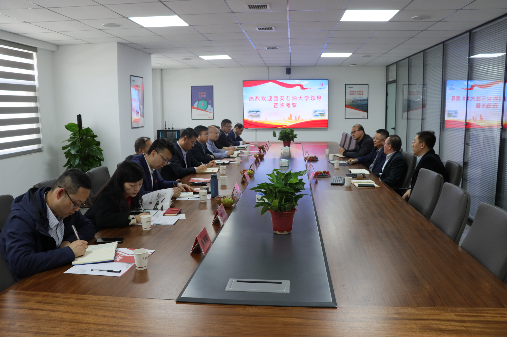 我校黨委辦公室(校長辦公室)、科研處、研究生院、校友工作與合作交流處、電子工程學院、機械工程學院、材料科學與工程學院負責同志隨同走訪。