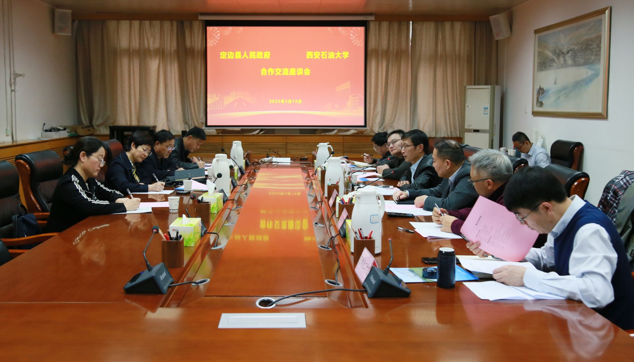 定邊縣工業(yè)商貿(mào)局、統(tǒng)計局以及定慶能源公司負(fù)責(zé)同志;我校黨委辦公室(校長辦公室)、科研處、石油工程學(xué)院、地球科學(xué)與工程學(xué)院、化學(xué)化工學(xué)院負(fù)責(zé)同志參加座談。