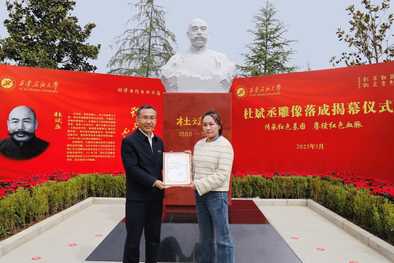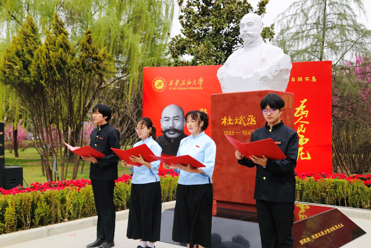 王進(jìn)富在總結(jié)中強(qiáng)調(diào),杜斌丞先生一生追求進(jìn)步,追求真理,堅(jiān)持革命。雕像的落成,既是對(duì)先生的致敬,更是對(duì)精神的傳承。站在新的歷史起點(diǎn),全校上下應(yīng)以杜斌丞先生的不朽功績(jī)和家國(guó)情懷為指引:堅(jiān)守教育報(bào)國(guó)初心,讓“好學(xué)力行、自強(qiáng)不息”的校訓(xùn)精神代代相傳;傳承興教育人思想,讓“石油精神辦學(xué)、鐵人精神育人、延安精神鑄魂”的辦學(xué)理念生生不息;勇?lián)茉磮?bào)國(guó)使命,讓“為人誠(chéng)實(shí)、基礎(chǔ)扎實(shí)、作風(fēng)樸實(shí)、工作踏實(shí)、開(kāi)拓創(chuàng)新”的西石大“四實(shí)一新”人才培養(yǎng)品牌熠熠生輝。