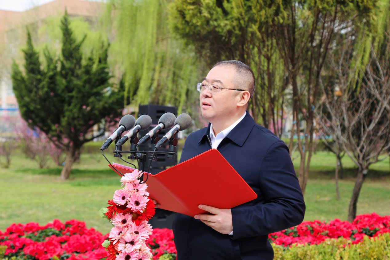 常江代表學(xué)校致辭,向出席揭幕儀式的來(lái)賓、關(guān)心支持雕像建設(shè)的同仁、捐建者劉德厚先生表示感謝。他指出,這一年學(xué)校加強(qiáng)校園文化建設(shè),進(jìn)一步發(fā)掘和用好學(xué)校文化資源,構(gòu)筑特色鮮明的大學(xué)文化體系,持續(xù)深化鐵人精神教育,強(qiáng)化“四實(shí)一新”育人品牌特色,不斷梳理辦學(xué)歷史,以史鑒今育人,用歷史傳承厚積奮進(jìn)源泉。他強(qiáng)調(diào),為杜斌丞先生豎立雕像,既是學(xué)校對(duì)重要?jiǎng)?chuàng)校人物精神遺產(chǎn)的傳承,也是對(duì)我校辦學(xué)理念的深化表達(dá),杜斌丞雕像必將成為西石大校園文化地標(biāo)和校園文化建設(shè)的新起點(diǎn)。