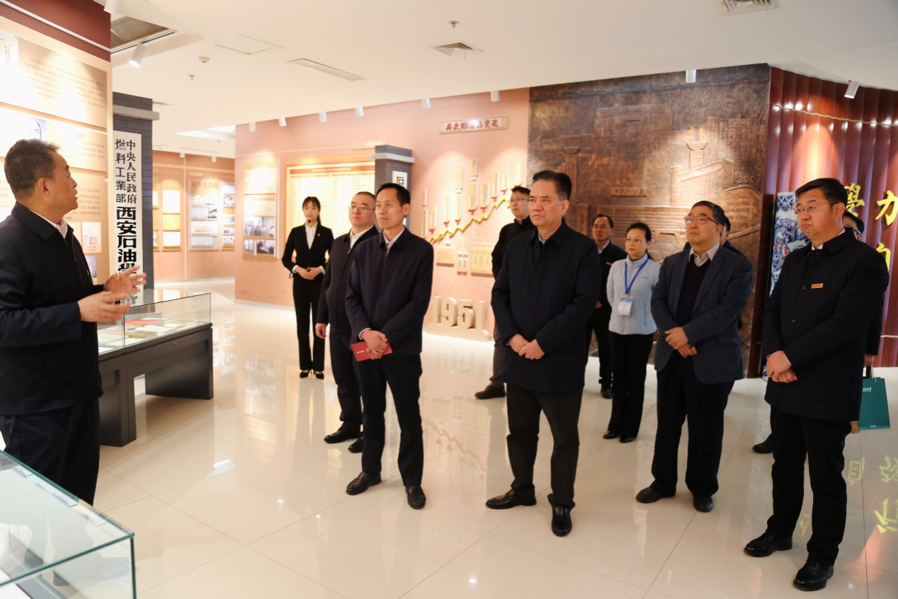 揭幕儀式前,出席儀式的領(lǐng)導(dǎo)和嘉賓參觀了西安石油大學(xué)校史館和鐵人王進(jìn)喜紀(jì)念館。常江、王進(jìn)富、張木、程永清、趙健陪同參觀。