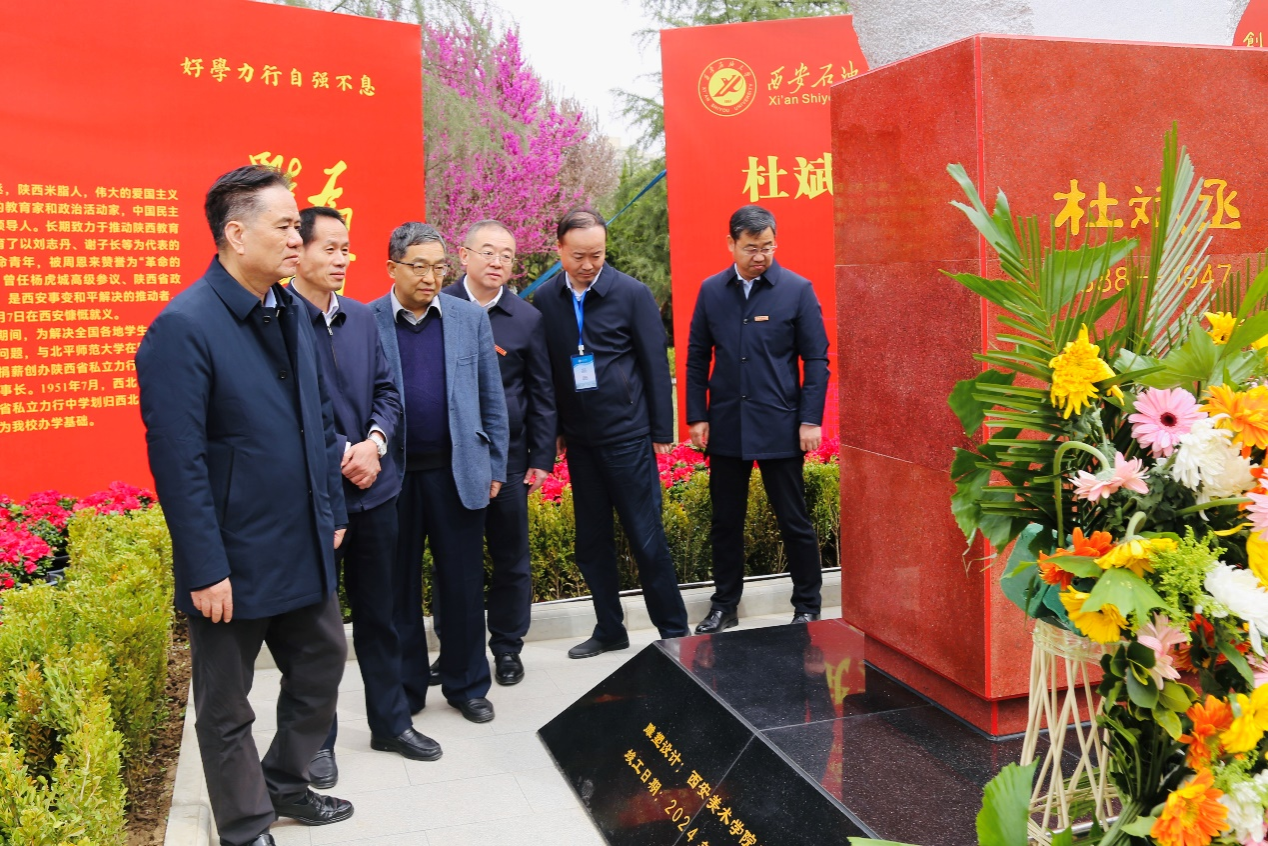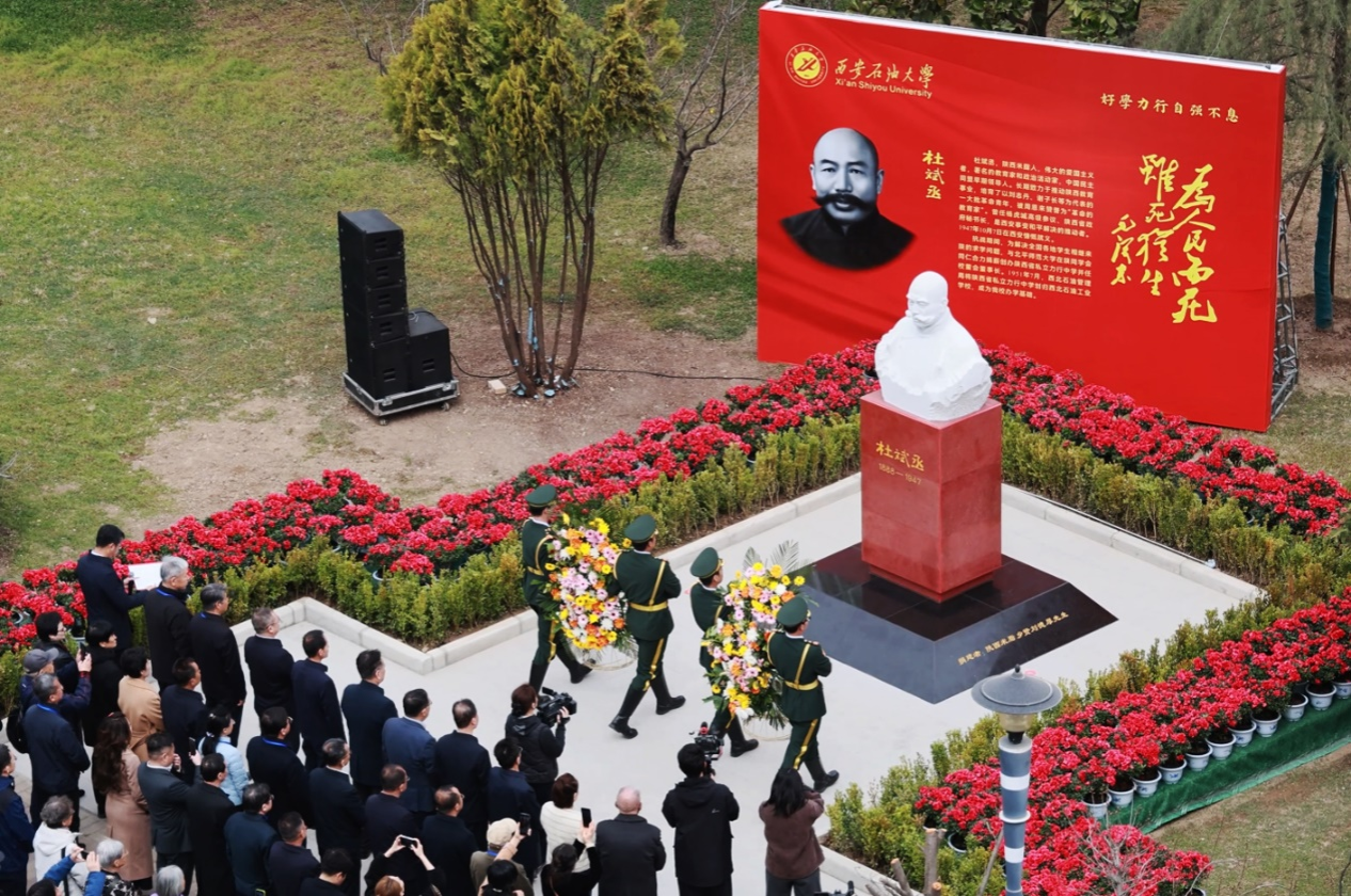 揭幕儀式上,張道宏在致辭中向杜斌丞先生致以深切緬懷,向到場(chǎng)的各位親屬表示親切慰問(wèn),向西安石油大學(xué)以及雕像捐建者劉德厚先生表示感謝。他指出,1951年,經(jīng)西北軍政委員會(huì)教育部同意,杜斌丞先生捐薪創(chuàng)辦的陜西省私立力行中學(xué)劃歸西北石油工業(yè)學(xué)校,成為西安石油大學(xué)辦學(xué)之基礎(chǔ)。雕像的落成不僅是對(duì)杜斌丞先生的紀(jì)念,更是對(duì)學(xué)校歷史根脈的溯源賡續(xù)、文化精神的凝練升華,以及育人使命的時(shí)代呼應(yīng)。他強(qiáng)調(diào),民盟作為以文化、教育和相關(guān)科技為主界別的中國(guó)特色社會(huì)主義參政黨,正在認(rèn)真貫徹落實(shí)習(xí)近平總書(shū)記重要講話精神,發(fā)揮自身優(yōu)勢(shì),參與到國(guó)家教育科技人才體制機(jī)制一體改革和發(fā)展的偉大實(shí)踐當(dāng)中。通過(guò)回溯杜斌丞“以筆為劍、以血明志”的事跡,民盟“奔走國(guó)是、關(guān)注民生”的光榮使命得到傳承。未來(lái),民盟將繼續(xù)發(fā)揮界別優(yōu)勢(shì),與西安石油大學(xué)深化合作,為推動(dòng)高等教育改革發(fā)展貢獻(xiàn)智慧與力量。