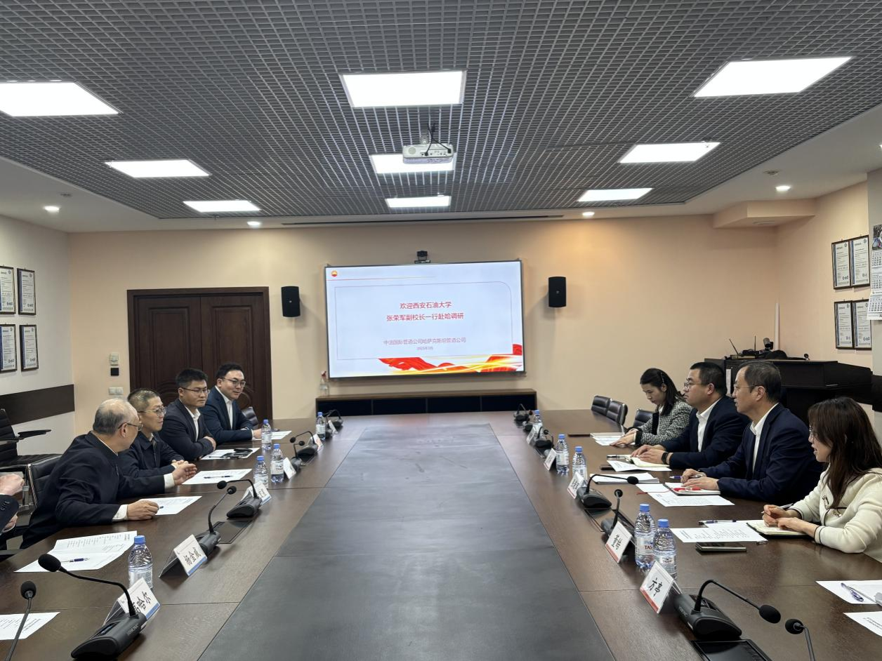 3月29日,張榮軍與華油能源集團哈薩克斯坦分公司領導和代表進行會談。華油能源集團哈薩克斯坦大區(qū)總經(jīng)理張磊、哈薩克斯坦大區(qū)阿拉木圖辦事處主任朱施霖、哈薩克斯坦大區(qū)克孜勒奧爾達項目部經(jīng)理袁再旺參加座談。雙方圍繞屬地化員工培訓、人才輸送、技術攻關、實驗室聯(lián)合建設等進行深入探討。華油能源集團哈薩克斯坦大區(qū)代表們還為學校面向哈薩克斯坦開展國際教育科技合作提供了寶貴的意見建議。