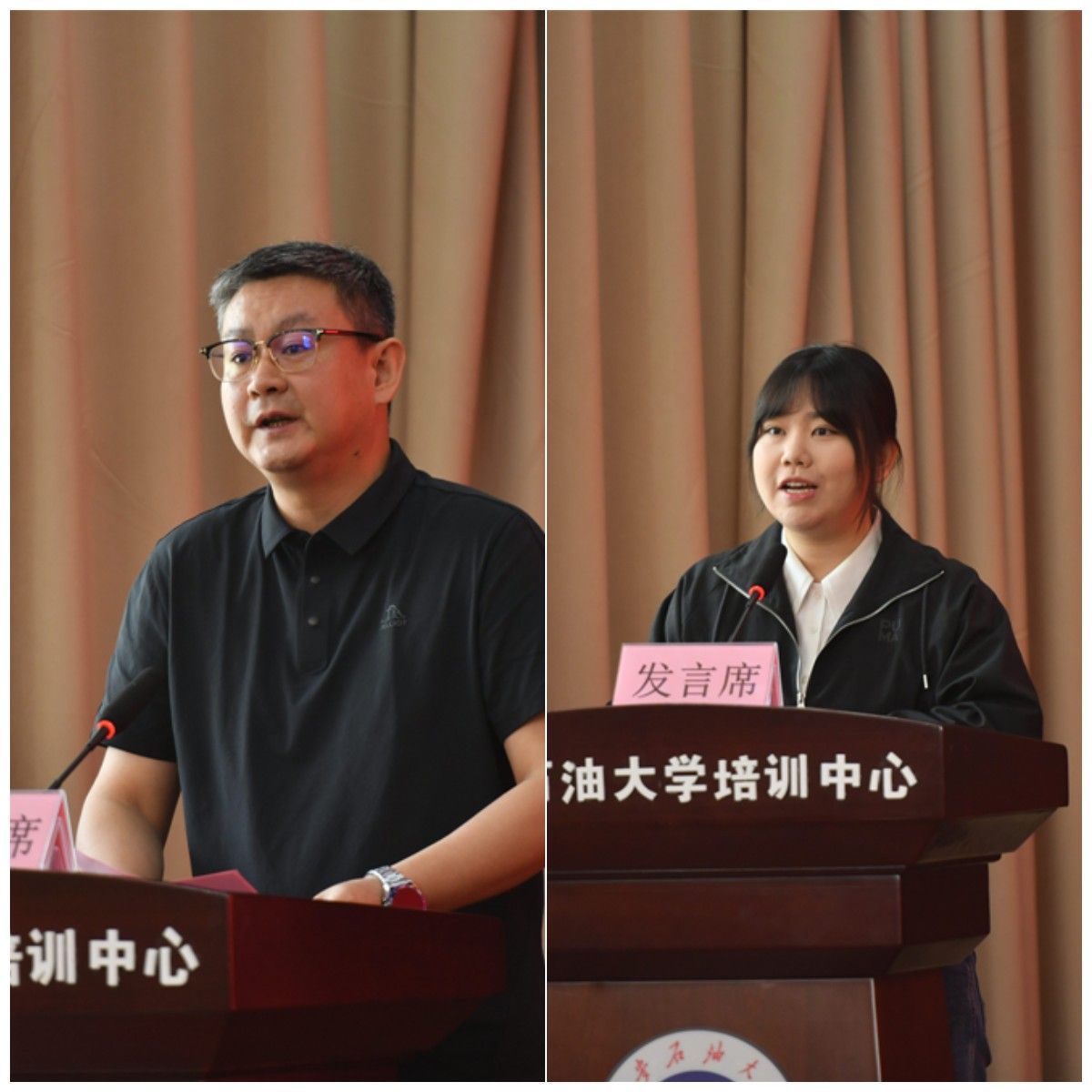 同力申碩石油與天然氣工程學科唐煒、專升本人力資源管理專業(yè)韓伊茗代表新生發(fā)言。