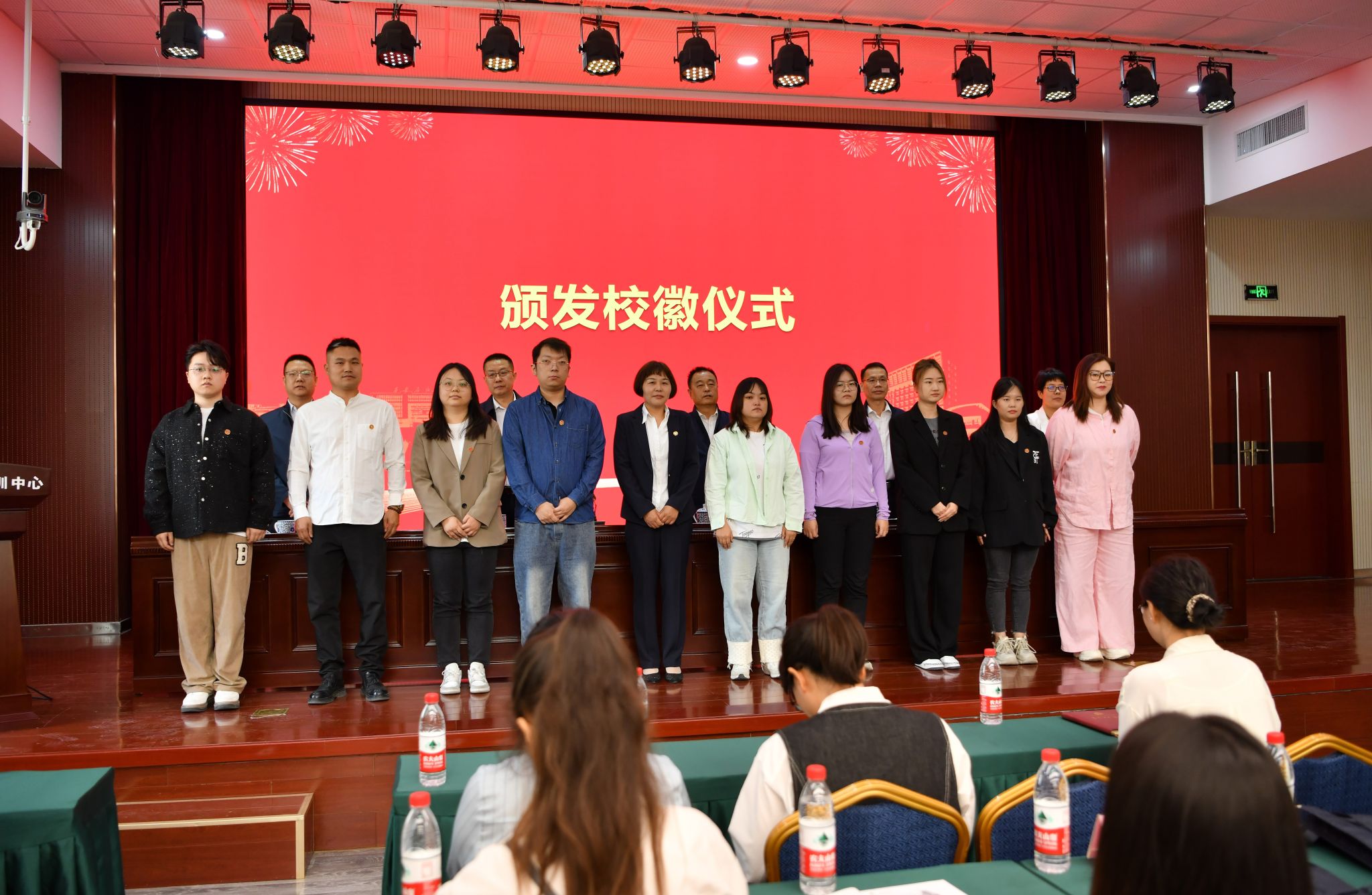 隨后,主席臺領導和嘉賓為新生代表頒發(fā)并佩戴?;?。教務老師們從學籍管理、教學管理、教學平臺使用等方面為新生開展了講解和培訓。