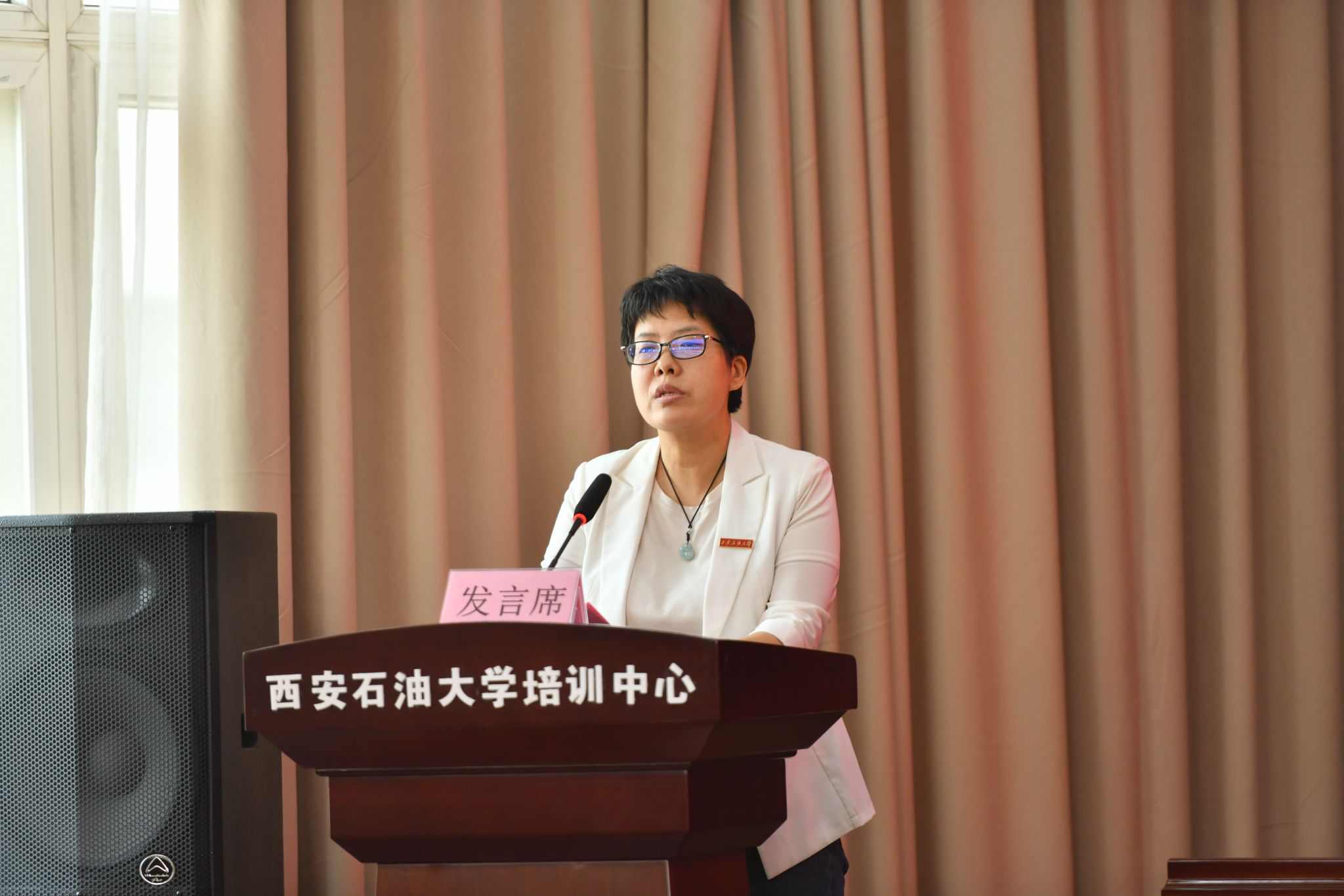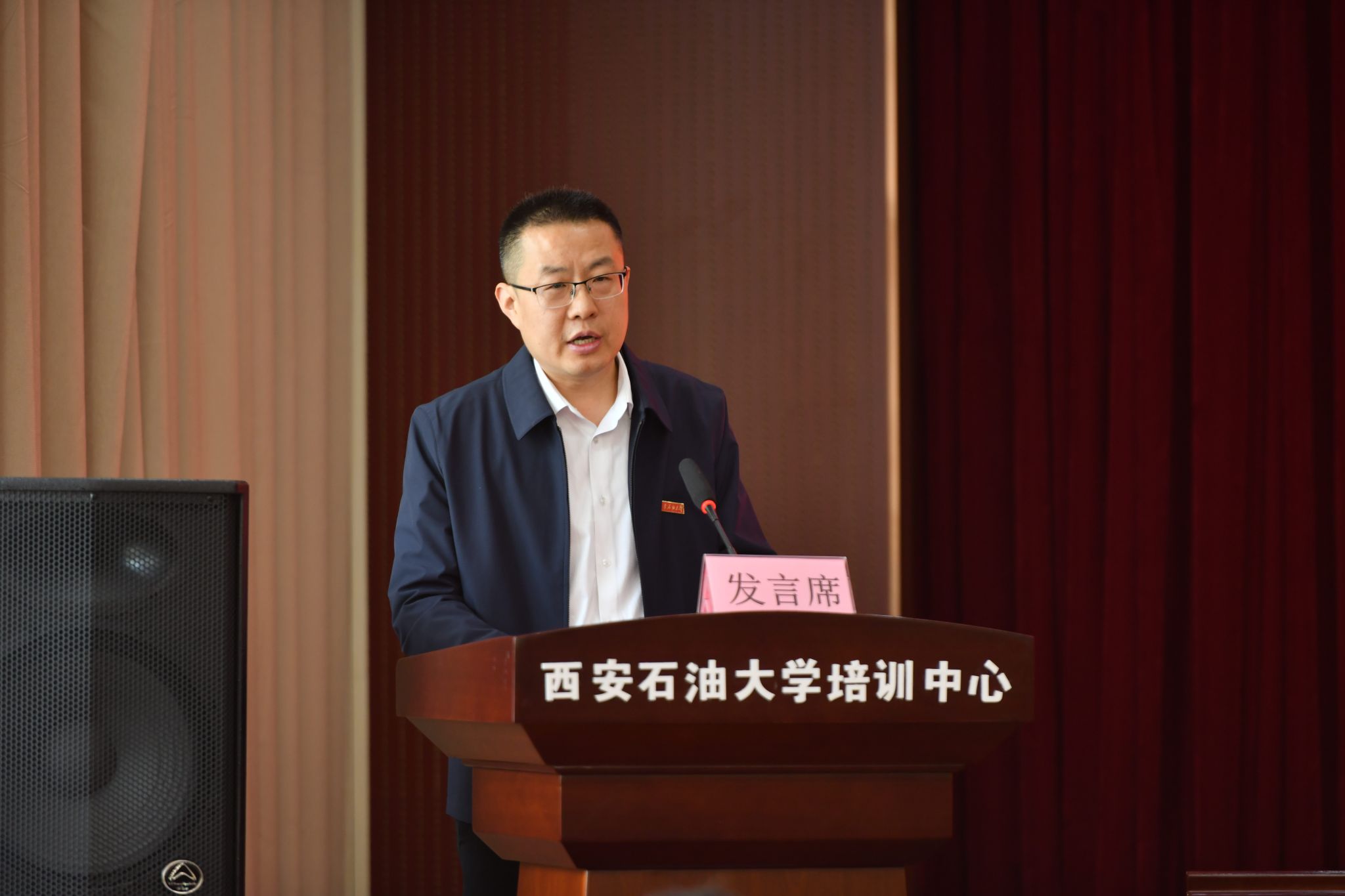 榆林長城理工學校副校長馬瑞代表校外教學點發(fā)言。他希望同學們能以理想為帆,以學習為槳,以實踐為舟,以堅韌為錨,以“青春作伴好讀書”的熱情,以“不待揚鞭自奮蹄”的自覺,在西安石油大學這片沃土上,書寫屬于繼教學子的華章。