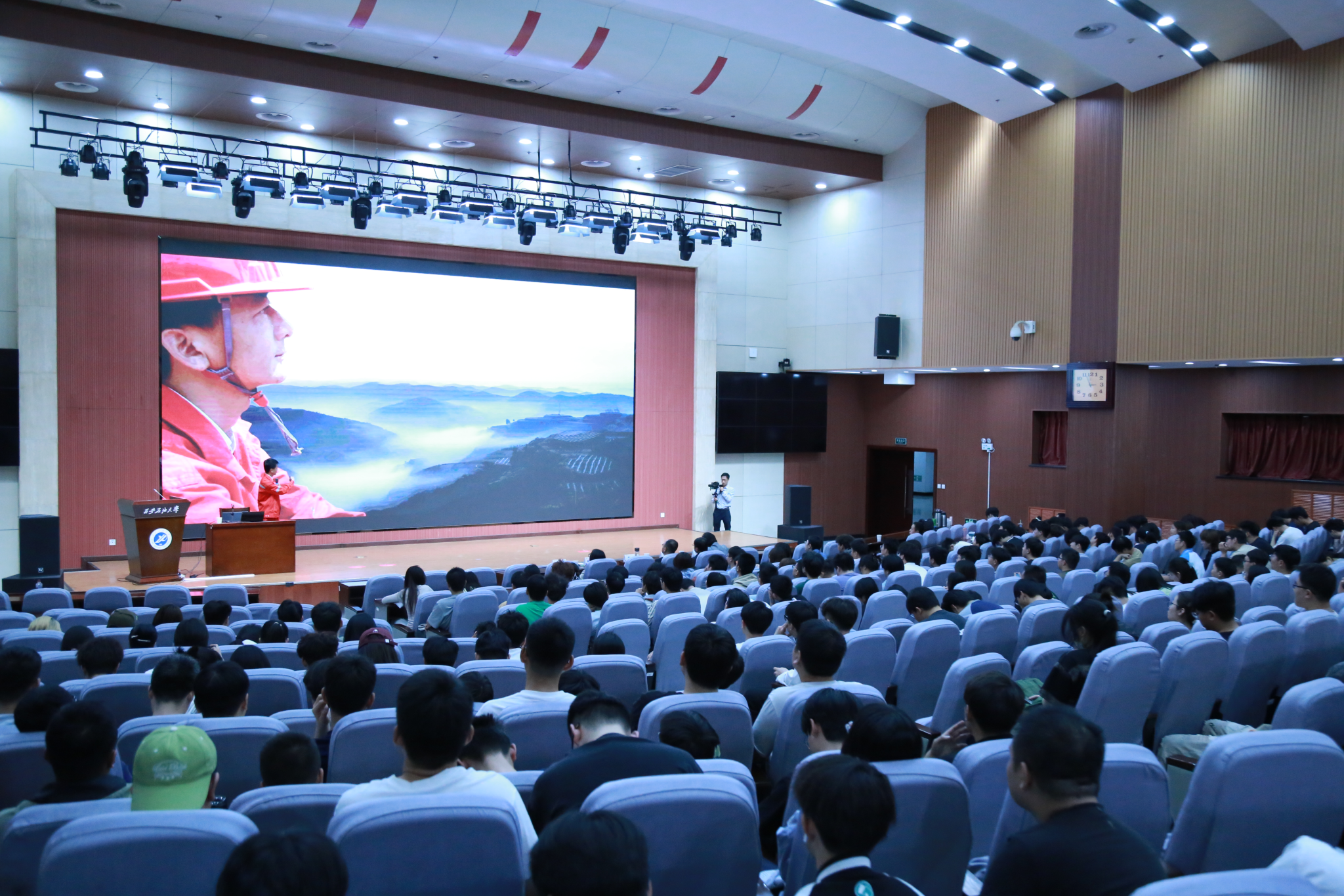 趙健代表學(xué)校對兩名優(yōu)秀校友回到母校表示歡迎,對校友所獲榮譽表示祝賀,并要求現(xiàn)場同學(xué)要以此次報告會為契機,把“干一行愛一行、鉆一行精一行”的信念融入血脈,同時提出了三點希望。一是要讀懂工匠精神,感悟精神的力量。他指出工匠精神是各個時代奮斗者的精神坐標(biāo),它與“鐵人精神”血脈相連,與“我為祖國獻石油”的信念同根同源。進一步要求同學(xué)們要以精益求精的態(tài)度深耕專業(yè),以守正創(chuàng)新的勇氣突破自我,用踏實奮斗詮釋新時代青年的品格。二是要傳承工匠精神,擦亮奮斗底色。他表示今天學(xué)校將聘任楊義興校友作為我校的“校外兼職輔導(dǎo)員”,這是一次精神的“播種”。要求同學(xué)們要從楊義興校友講述的油田一線故事中,學(xué)習(xí)“擇一事終一生”的專注,涵養(yǎng)“千萬錘成一器”的追求,厚植“功成不必在我”的胸懷,讓“苦干實干”的石油傳統(tǒng)精神在校園里生根發(fā)芽。三是要接續(xù)精神火炬,書寫青春答卷。他談到同學(xué)們手中握著的不僅是書本,更是能源報國的接力棒。希望大家對標(biāo)優(yōu)秀校友,在新時代的征程中,用奮斗打磨青春底色,用擔(dān)當(dāng)詮釋石油人的赤誠!