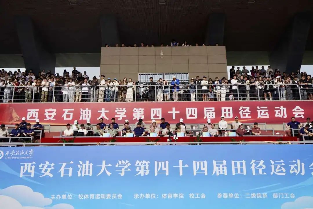 校黨委書記常江宣布:“西安石油大學第四十四屆田徑運動會開幕!”霎時,煙花漫天、掌聲四起、歡聲如雷。