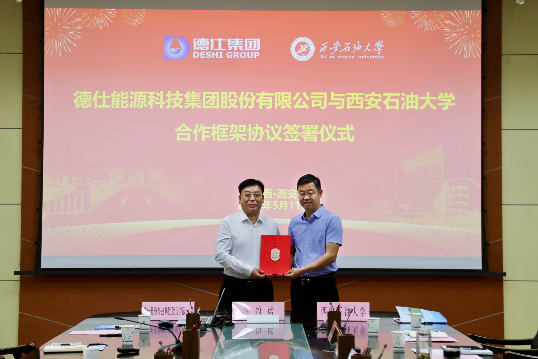 張榮軍和吳麗麗分別代表校企雙方簽署了《德仕能源科技集團股份有限公司與西安石油大學合作框架協(xié)議》。