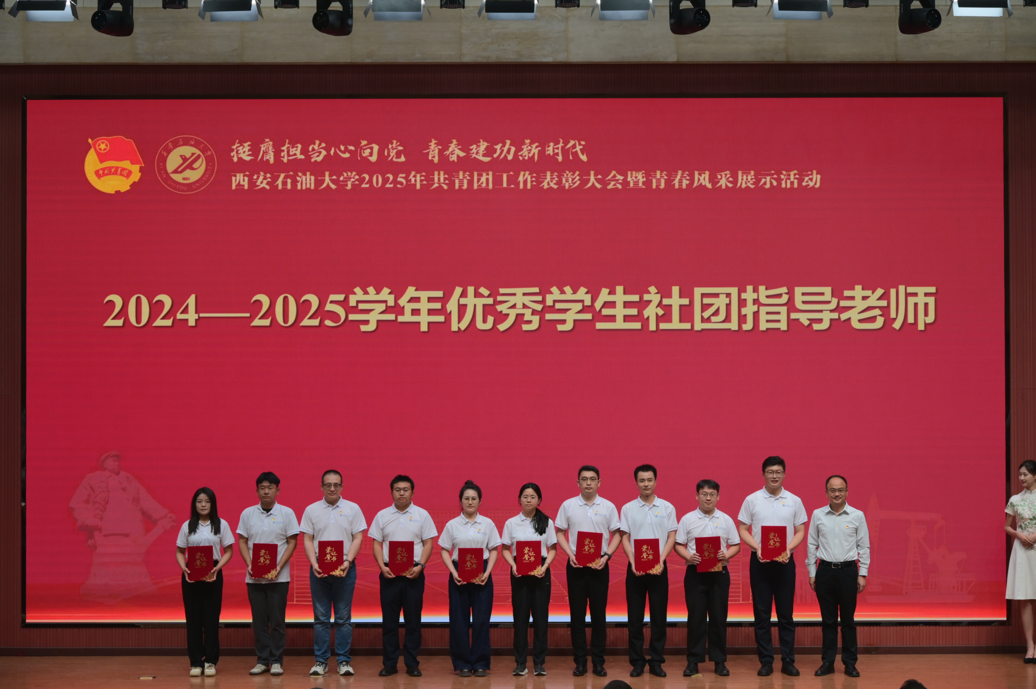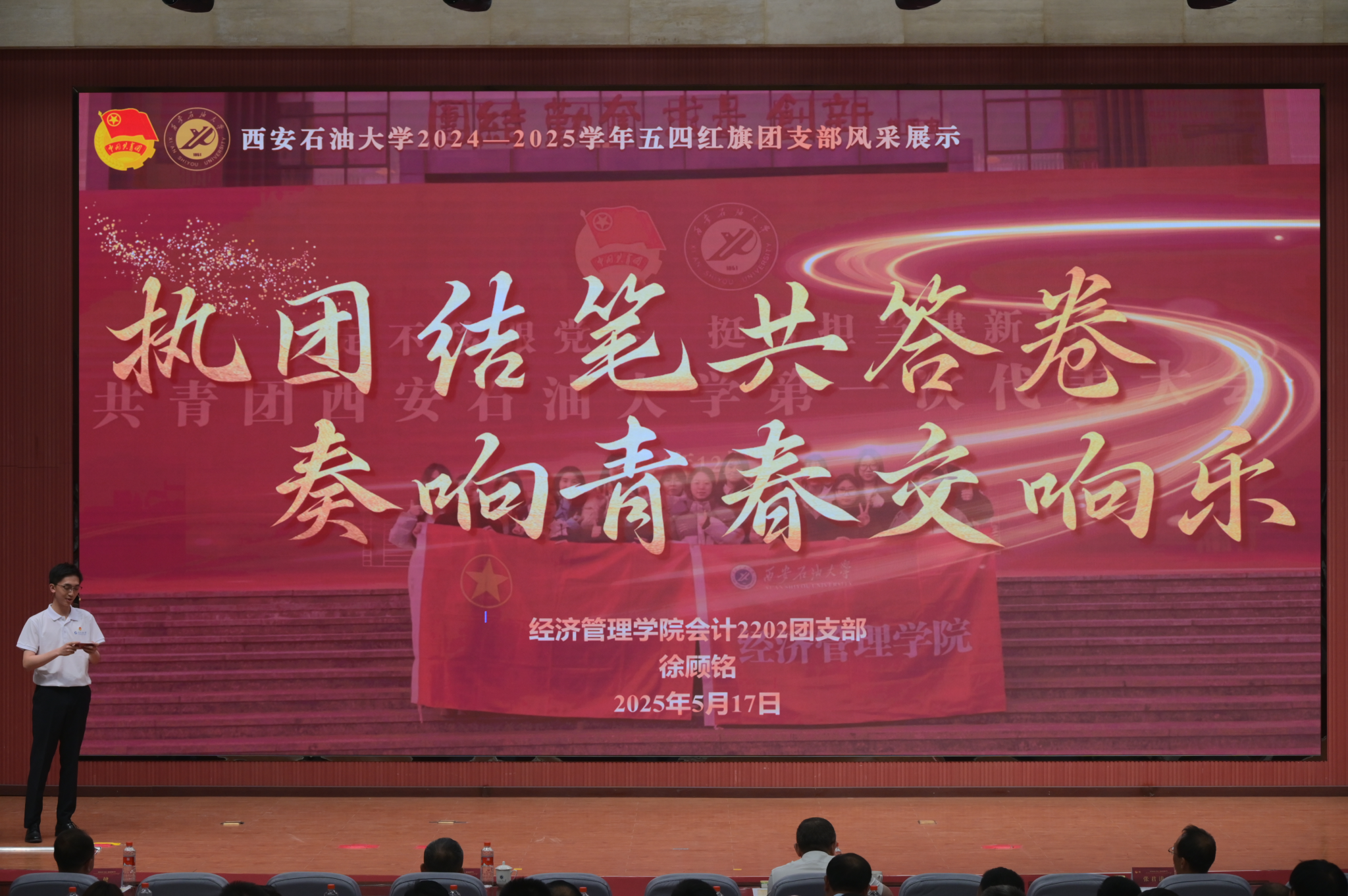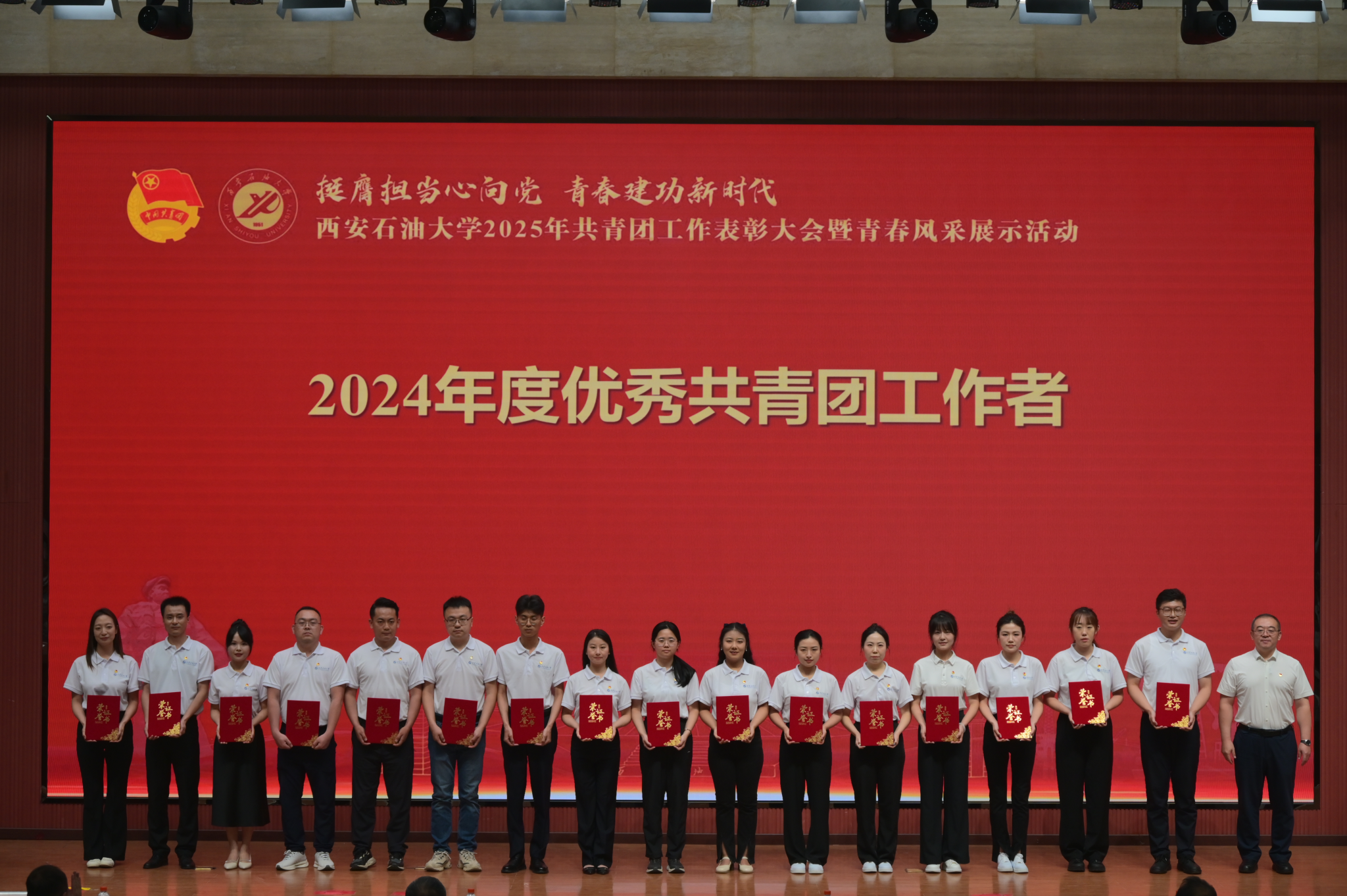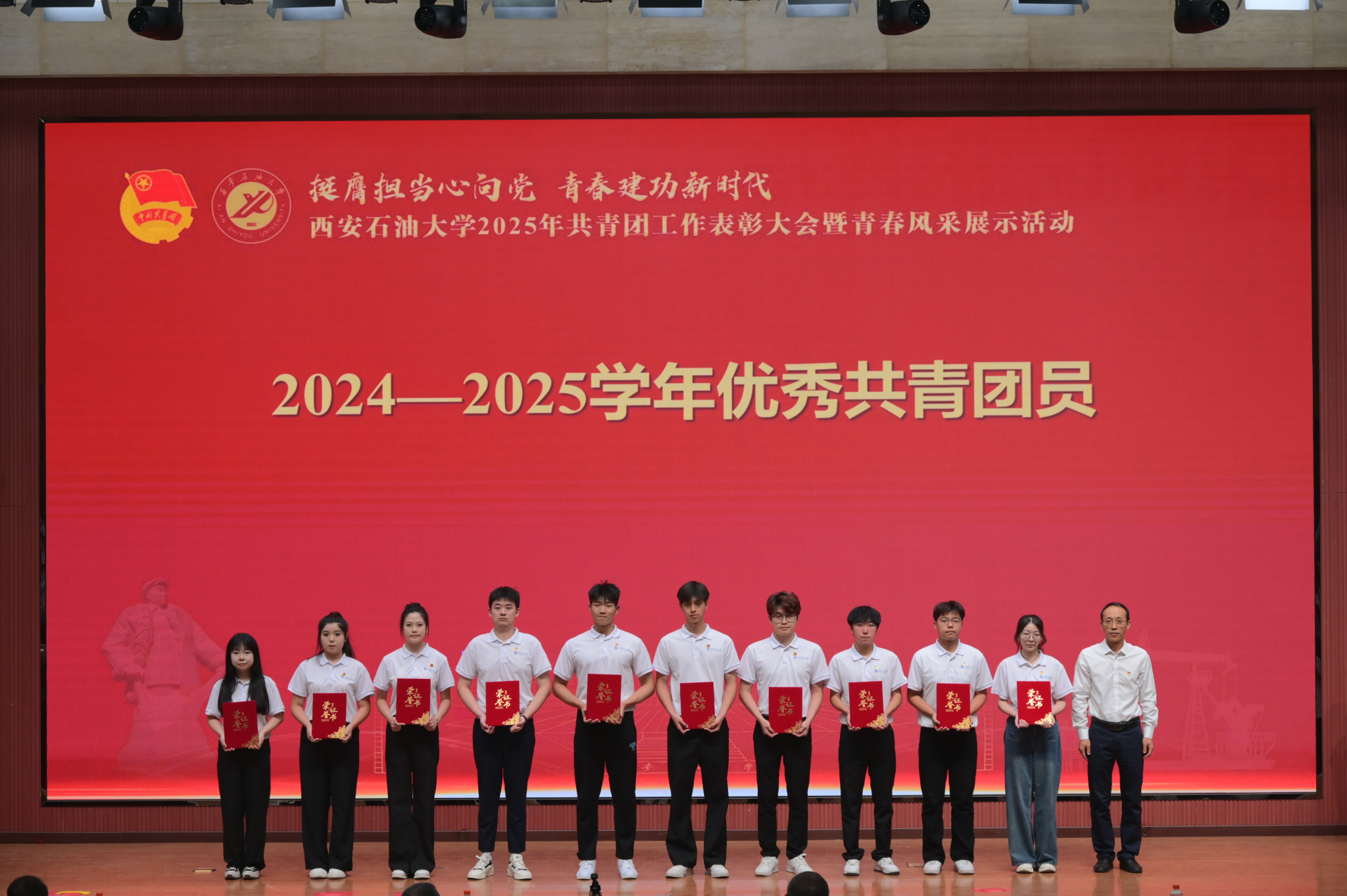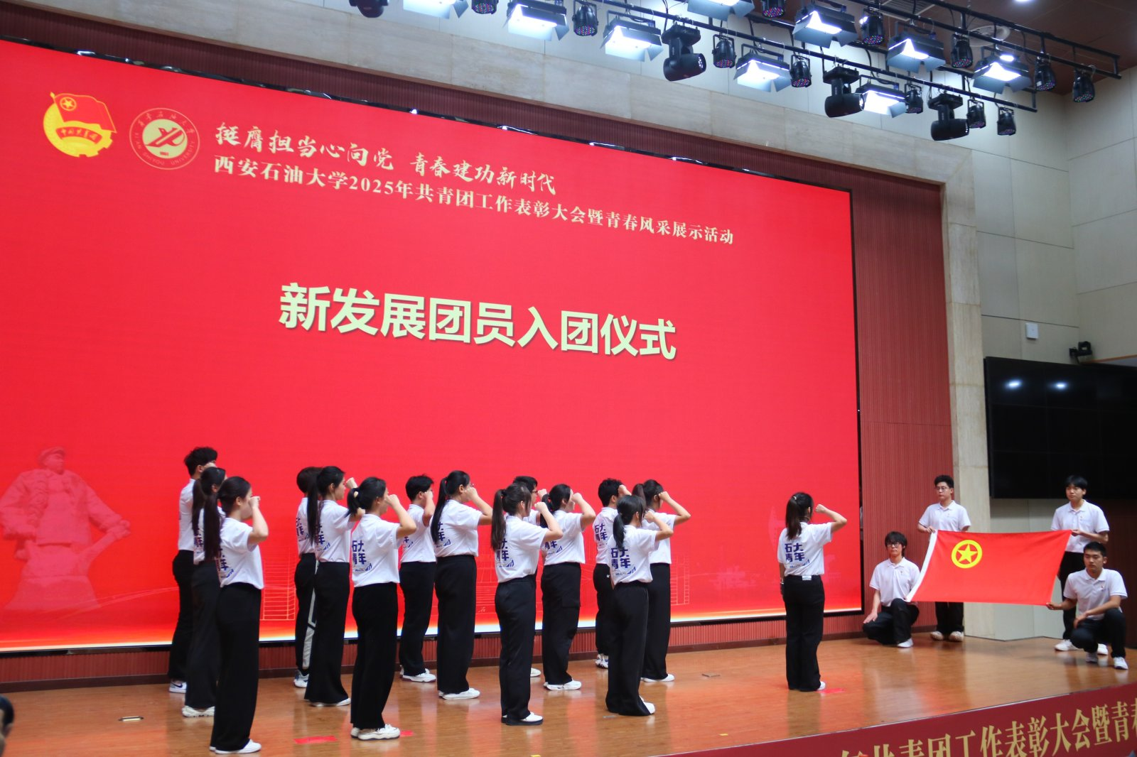 本次大會分為“引領·凝聚青春力量”“綻放·譜寫時代華章”“啟航·傳承五四薪火”三個篇章,通過表彰先進、風采展示、入團儀式等多種形式,展現(xiàn)西石大青年昂揚向上、銳意進取的精神風貌。