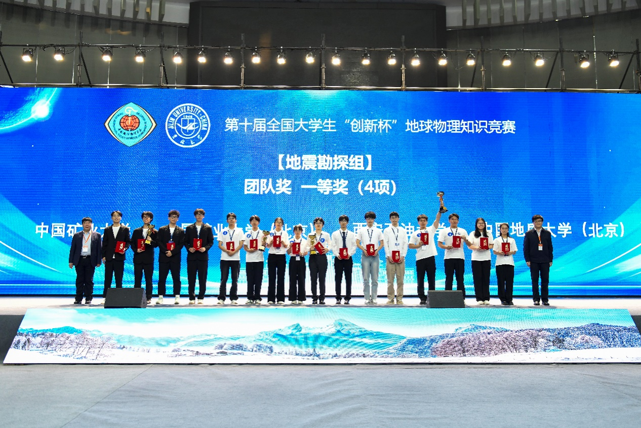 我校地球科學(xué)與工程學(xué)院黨政領(lǐng)導(dǎo)高度重視,派出由沈鴻雁副院長(zhǎng)領(lǐng)隊(duì),李萌副教授、馮旭亮副教授、李欣欣副教授分別擔(dān)任地震勘探類、重磁電勘探類、固體地球物理類指導(dǎo)教師的三支代表隊(duì)參賽。通過(guò)筆試、視頻評(píng)審、現(xiàn)場(chǎng)自我展現(xiàn)、個(gè)人必答題、團(tuán)隊(duì)必答題、綜合論述題、團(tuán)隊(duì)搶答題以及辯論題等環(huán)節(jié)的激烈角逐,最終朱珺潔(地信22級(jí)學(xué)生)、趙玉峰(物探22級(jí)學(xué)生)、王夢(mèng)(物探21級(jí)學(xué)生)、卜釗亮(物探21級(jí)學(xué)生)組成的地震勘探隊(duì)伍榮獲一等獎(jiǎng),李倩(地信22級(jí)學(xué)生)、李艷萍(物探22級(jí)學(xué)生)、王夢(mèng)馨(地信22級(jí)學(xué)生)、朱少維(地信21級(jí)學(xué)生)組成的重磁電勘探隊(duì)伍榮獲二等獎(jiǎng),周曉娜(物探21級(jí)學(xué)生)、向晶瑾(地信22級(jí)學(xué)生)、王淑瑩(物探22級(jí)學(xué)生)、劉子夏(物探22級(jí)學(xué)生)組成的固體地球物理隊(duì)伍榮獲三等獎(jiǎng)。